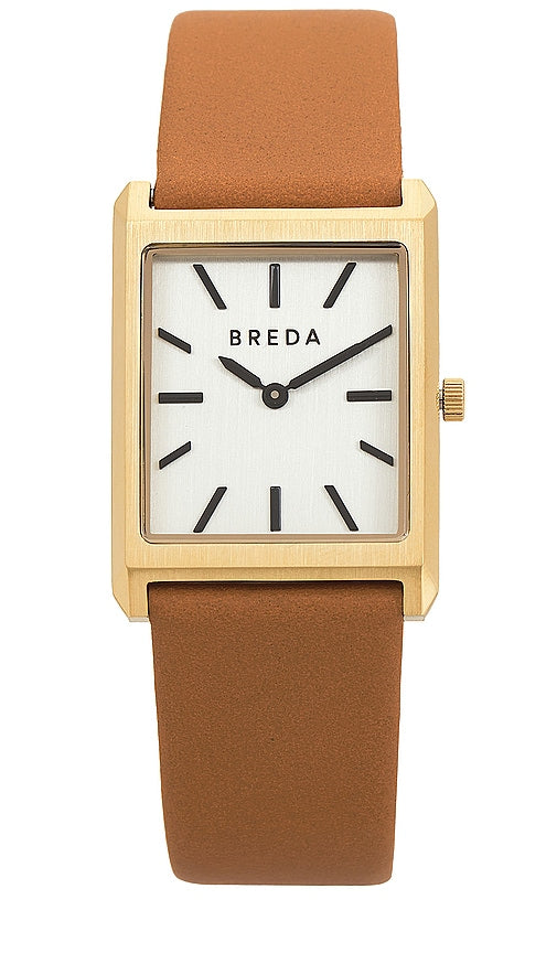 Breda Virgil Watch in Brown. Breda Virgil Watch in Brown. 18k gold-plated case with genuine leather band. Made in Japan. 26mm case with 20mm band. Water resistant. BEDA-WL17. 1736A. Shop the latest in fashion from Breda