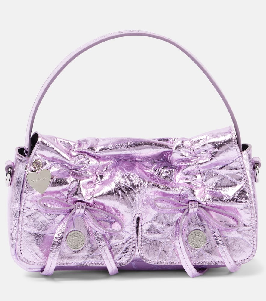 Material: leather. Lining: leather. Made in Italy. Designer color name: Lavender Purple. Includes: dust bag. Internal details: Card slots. Closure: magnetic fastening. Top handle, Detachable shoulder strap. Back slot pocket. Shop the latest Acne Studios Top-Handle Bags for women now.