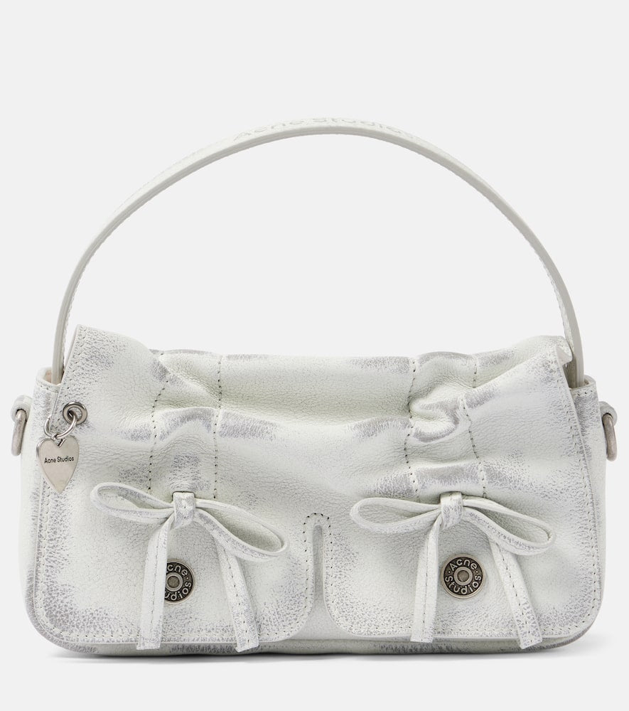 Material: leather. Lining: leather. Made in Italy. Designer color name: White / Grey. Includes: dust bag. Top handle, Detachable shoulder strap. Closure: magnetic fastening. Hardware color: antique silver. Back slot pocket. Internal details: Card slots. Shop the latest Acne Studios Top-Handle Bags for women now.