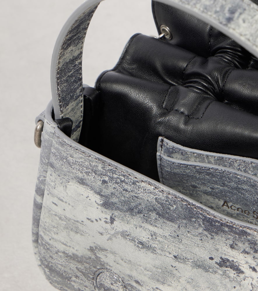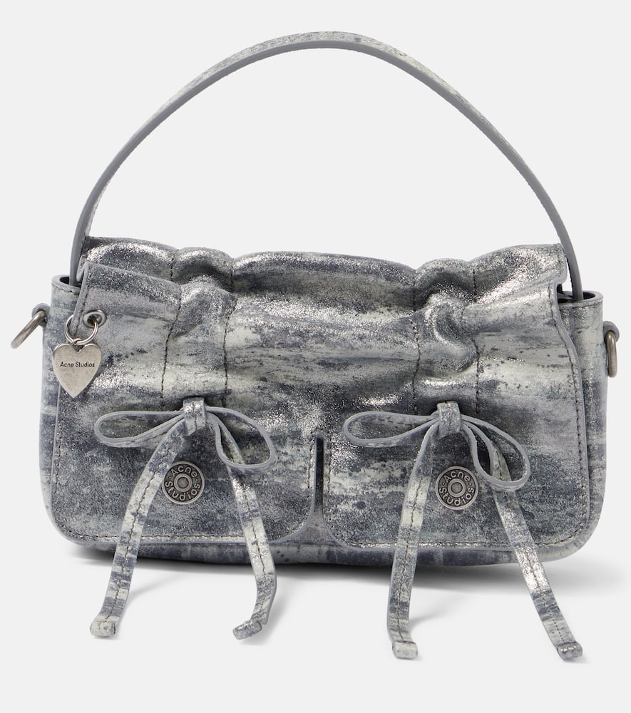 Material: leather. Lining: fabric. Made in Italy. Designer color name: Grey. Includes: dust bag. Closure: magnetic fastening. Top handle. Back slot pocket. Hardware color: silver. Internal details: Card slots. Shop the latest Acne Studios Top-Handle Bags for women now.