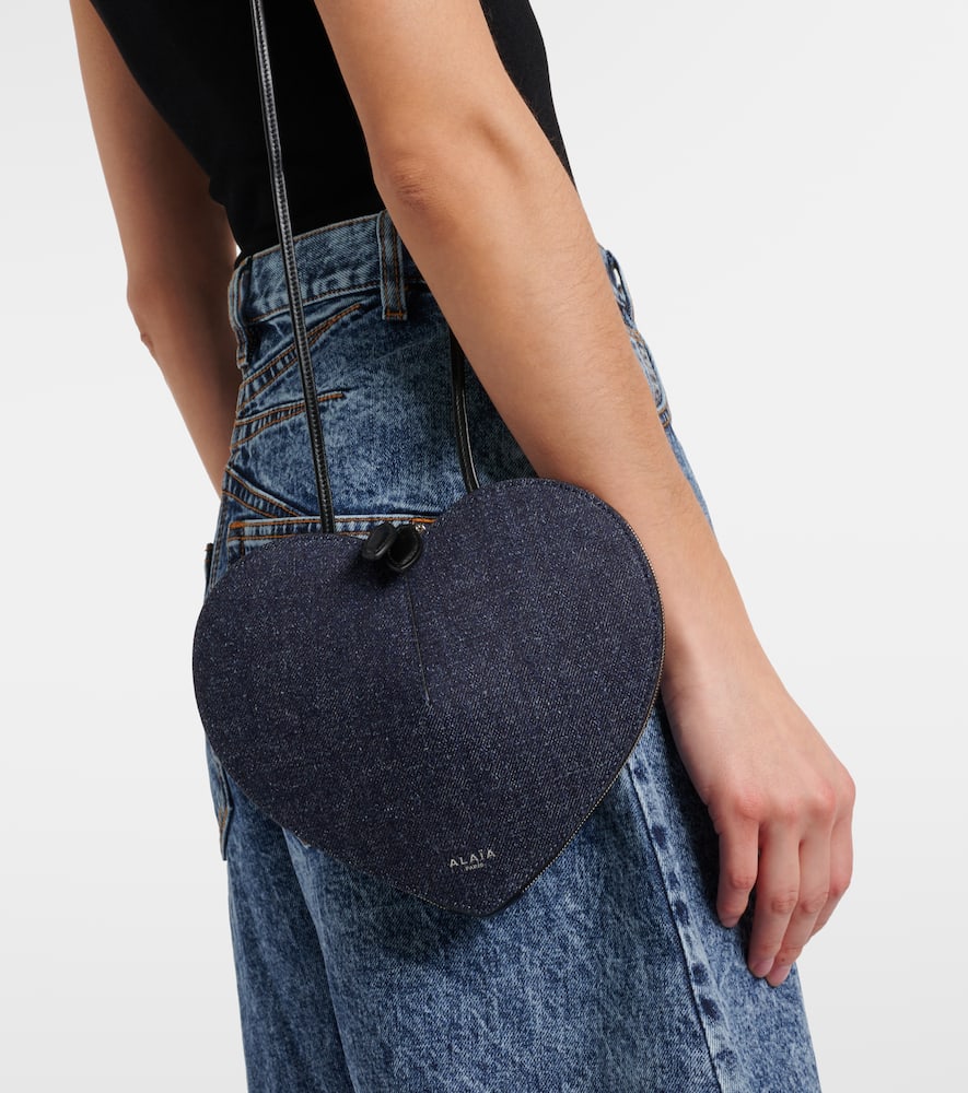 Material: fabric. Lining: leather. Made in Italy. Designer color name: Bleu Denim. Trim: leather. Closure: two-way zipped top. Hardware color: silver. Shoulder strap. Includes: dust bag. Shop the latest Alaia Crossbody Bags for women now.