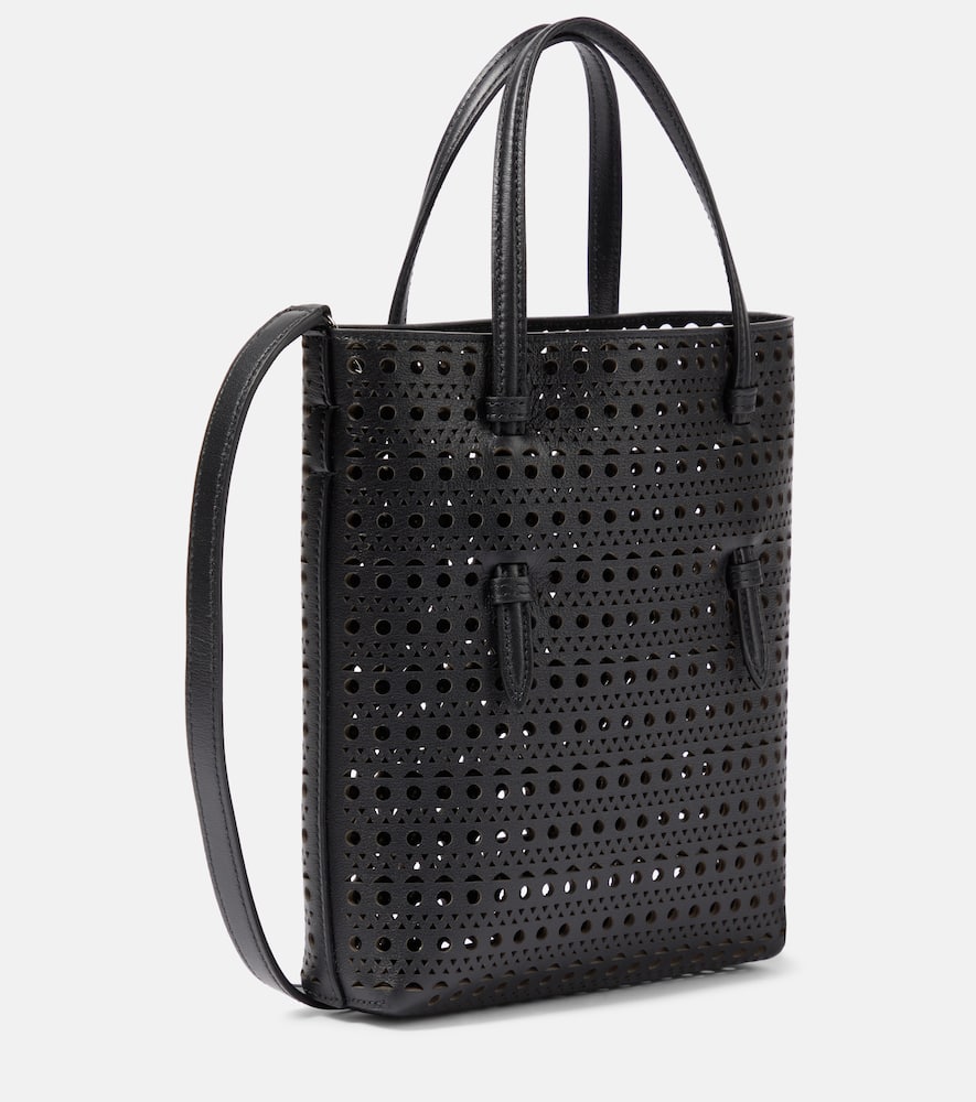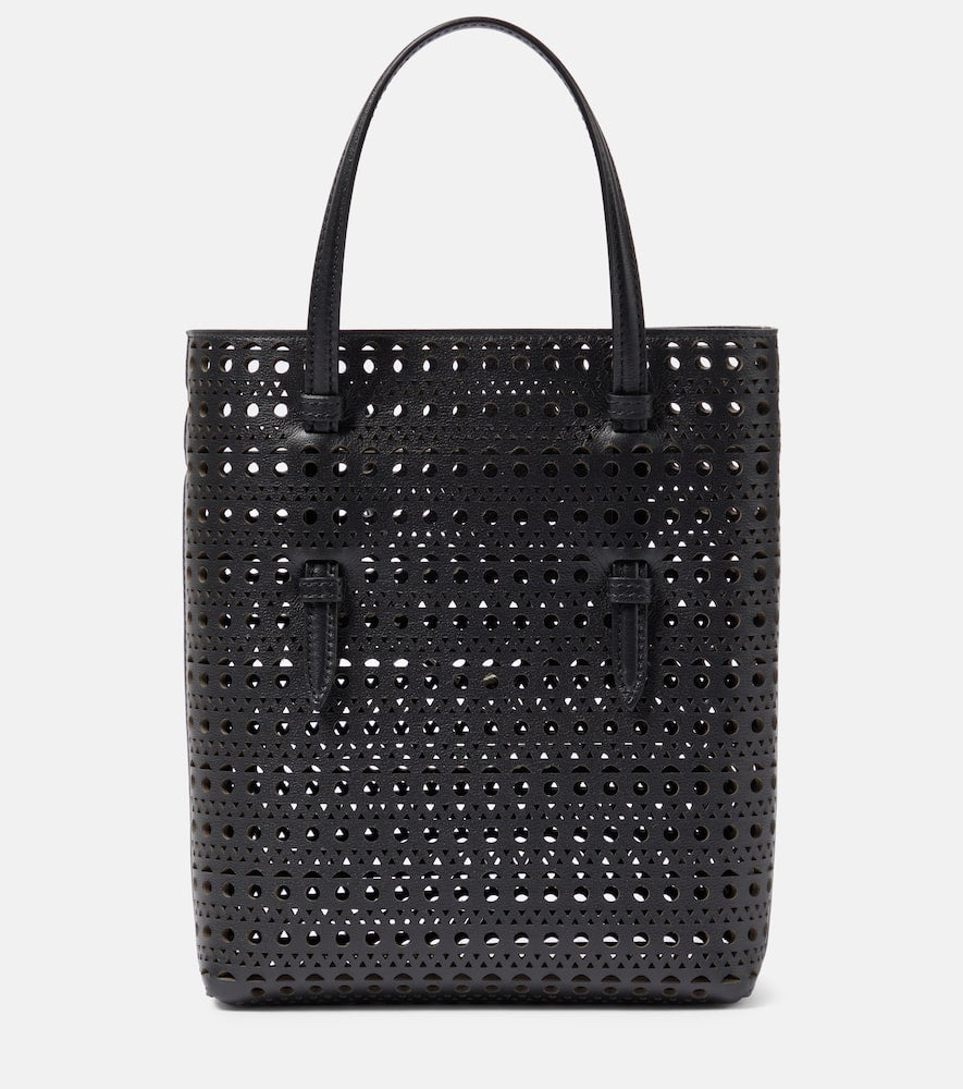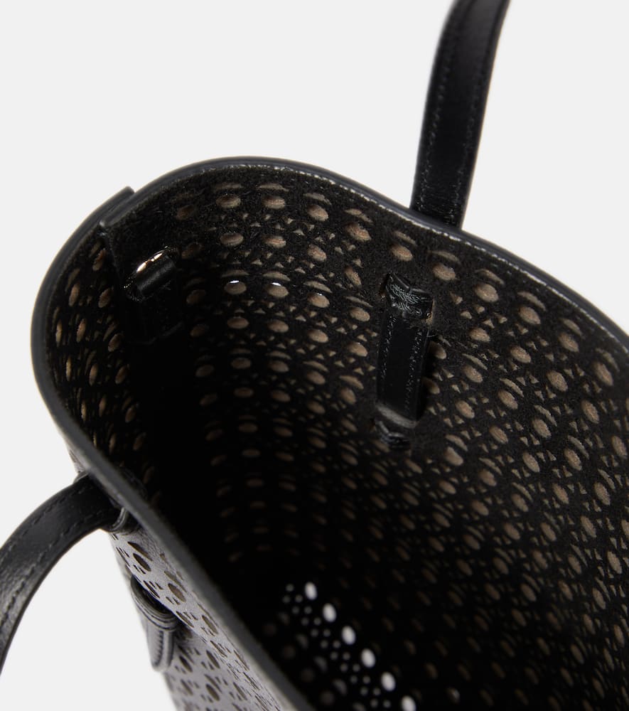 Material: leather. Lining: suede. Made in Italy. Designer color name: 999 - Noir. Closure: open top. Top handles, Detachable, adjustable shoulder strap. Comes with dust bag. Shop the latest Alaia Top-Handle Bags for women now.