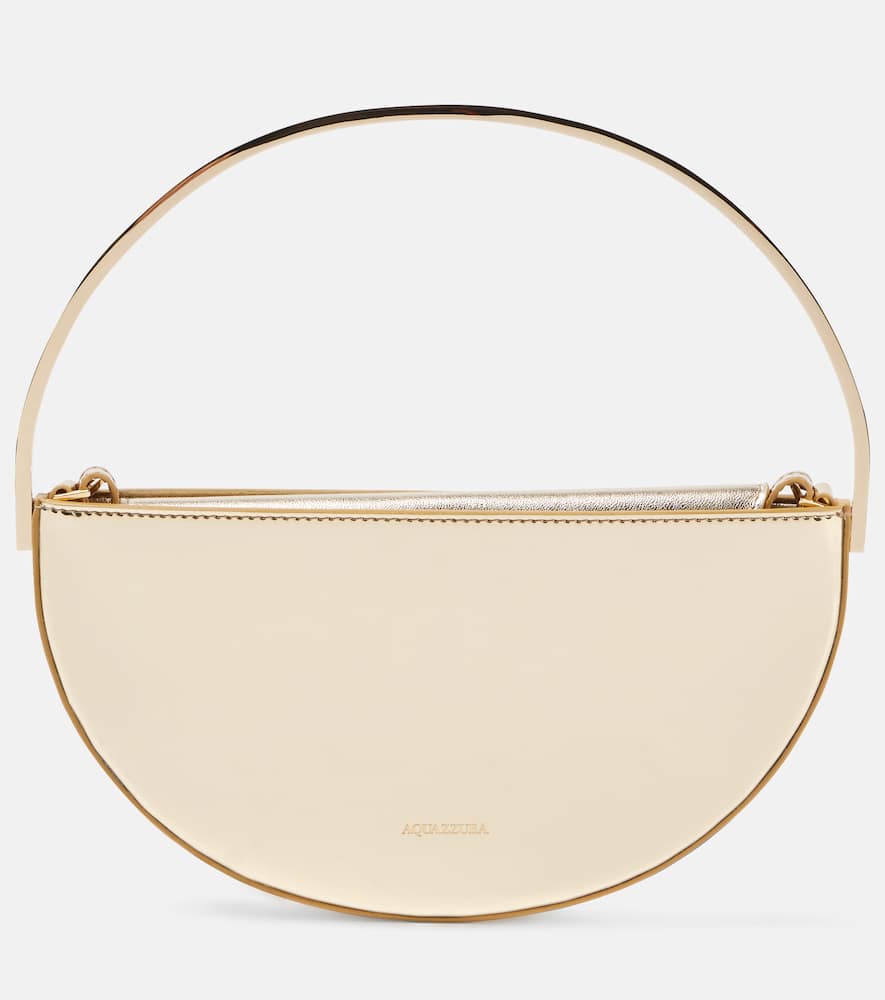 Material: polyester. Lining: leather. Made in Italy. Designer color name: Soft Gold/Light Gold. Hardware color: gold. Closure: snap-buttoned fastening. Top handle, Adjustable shoulder strap. Shop the latest Aquazzura Top-Handle Bags for women now.