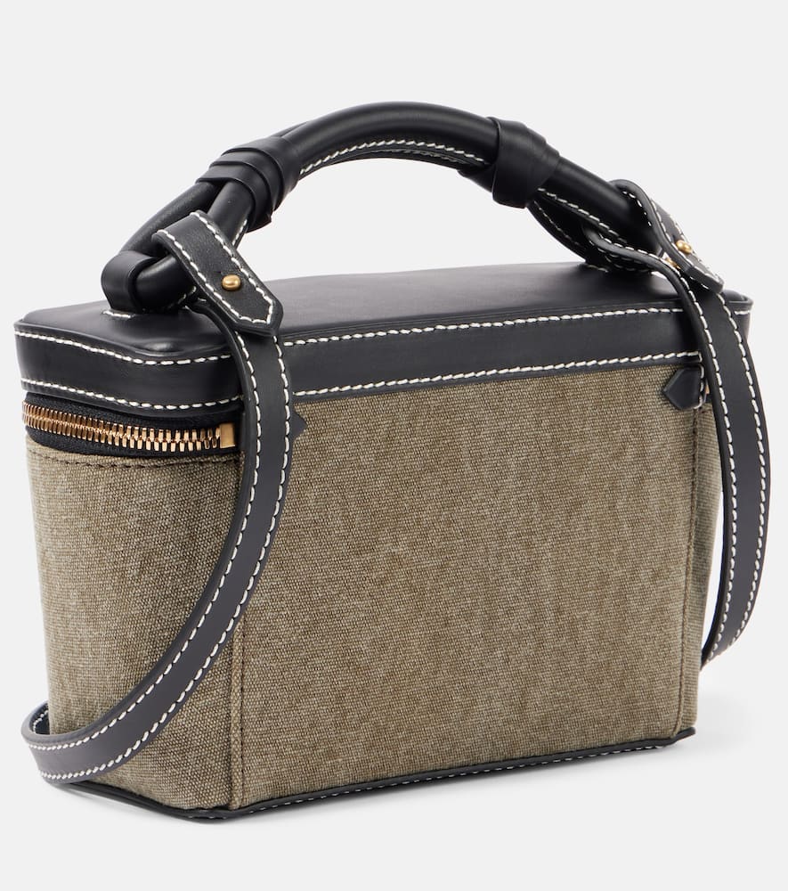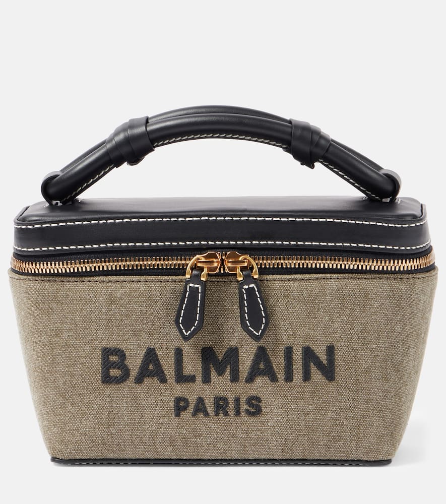 Material: fabric. Lining: fabric. Made in Italy. Designer color name: Ubk - Ubk Kaki/Noir. Trim: leather. Internal details: card slot, internal slot pocket. Closure: zipped top. Top handle, Adjustable shoulder strap. Includes: dust bag. Shop the latest Balmain Top-Handle Bags for women now.