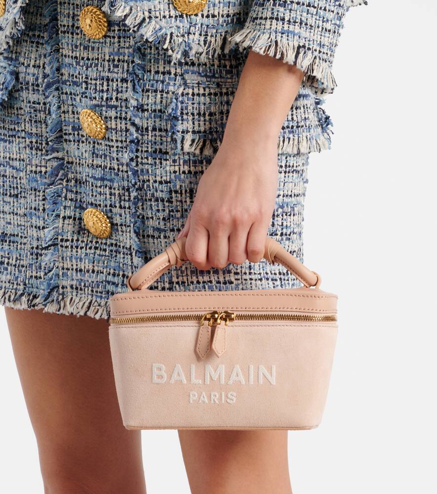 Material: leather. Lining: leather. Made in Italy. Designer color name: Rose. Includes: dust bag. Closure: two-way zipped top. Hardware color: gold. Protective leather bottom. Top handles, Detachable shoulder strap. Shop the latest Balmain Top-Handle Bags for women now.