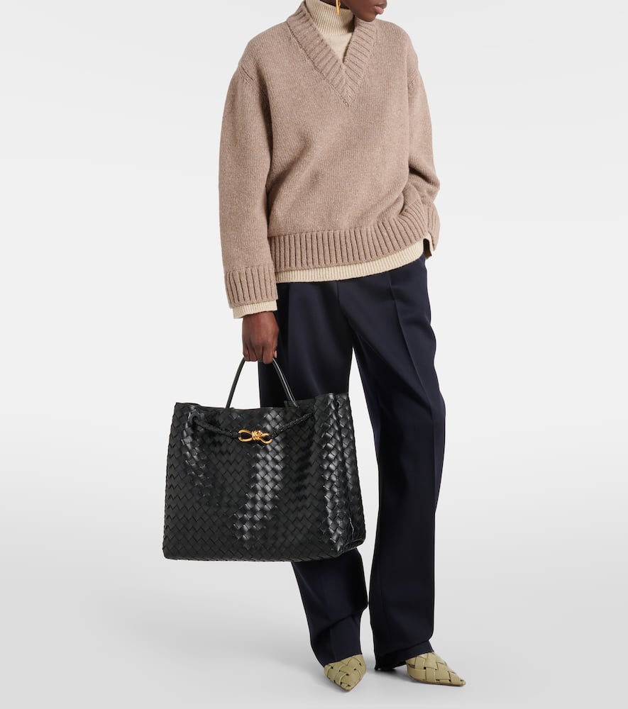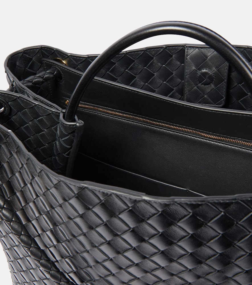 Material: leather. Lining: unlined. Made in Italy. Designer color name: Black-M Brasss-Black. Internal details: internal slot pockets, internal zipped pocket. Shoulder straps, Top handle. Closure: magnetic fastening. Includes: dust bag. Shop the latest Bottega Veneta Tote Bags for women now.