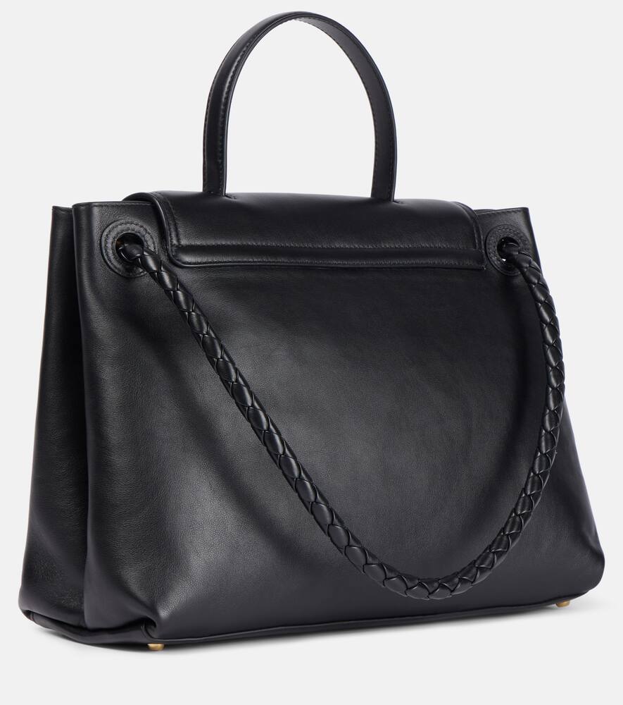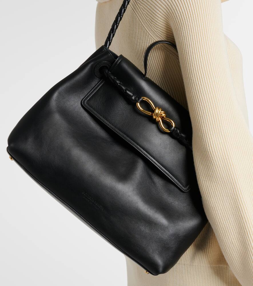 Material: leather. Lining: leather. Made in Italy. Designer color name: Black M Brass. Internal details: internal zipped pocket, two internal compartments. Closure: latch back fastening. Top handles, Wrist strap, Detachable shoulder strap. Hardware color: gold. Includes: dust bag. Shop the latest Bottega Veneta Top-Handle Bags for women now.