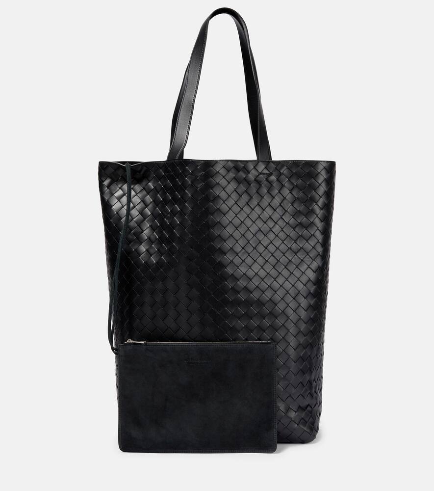 Detachable zipped pouch. Made in Italy. Designer color name: Black-Silver. Comes with dust bag. Material: leather. Color of strap: black. Internal details: suede lining. Closure: open top. Shop the latest Bottega Veneta Tote Bags for women now.