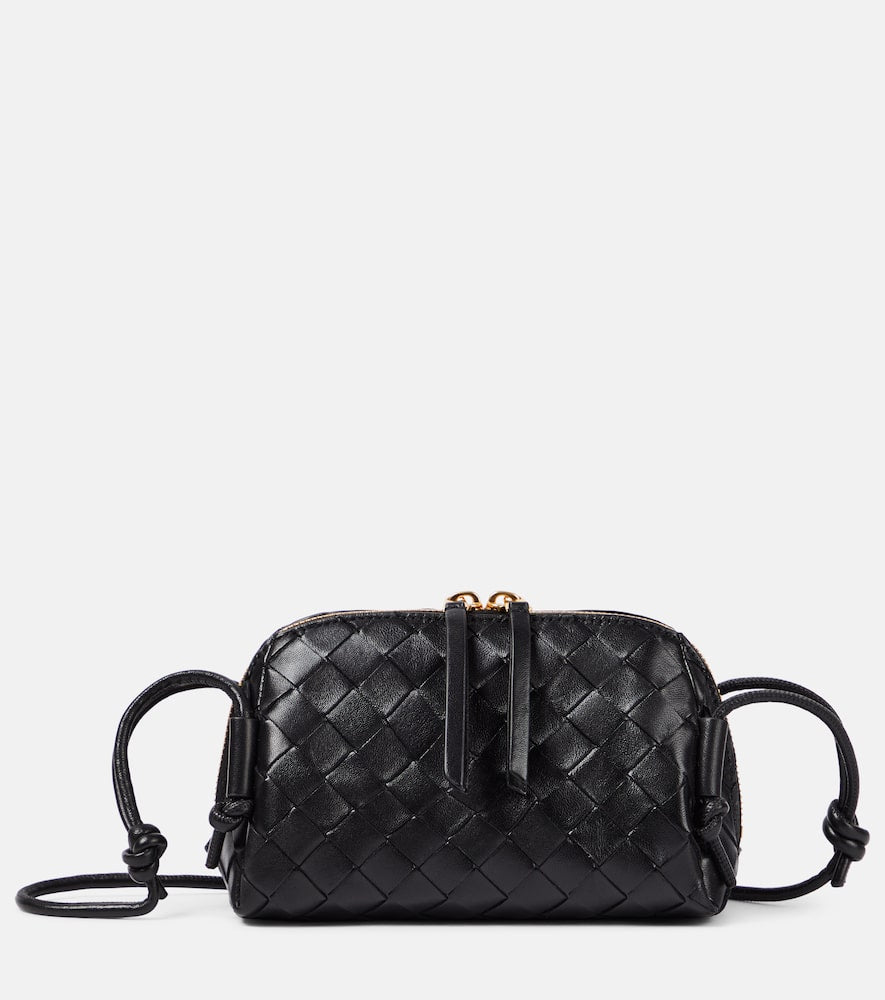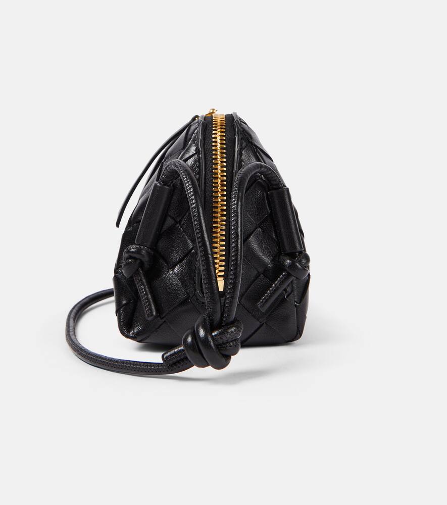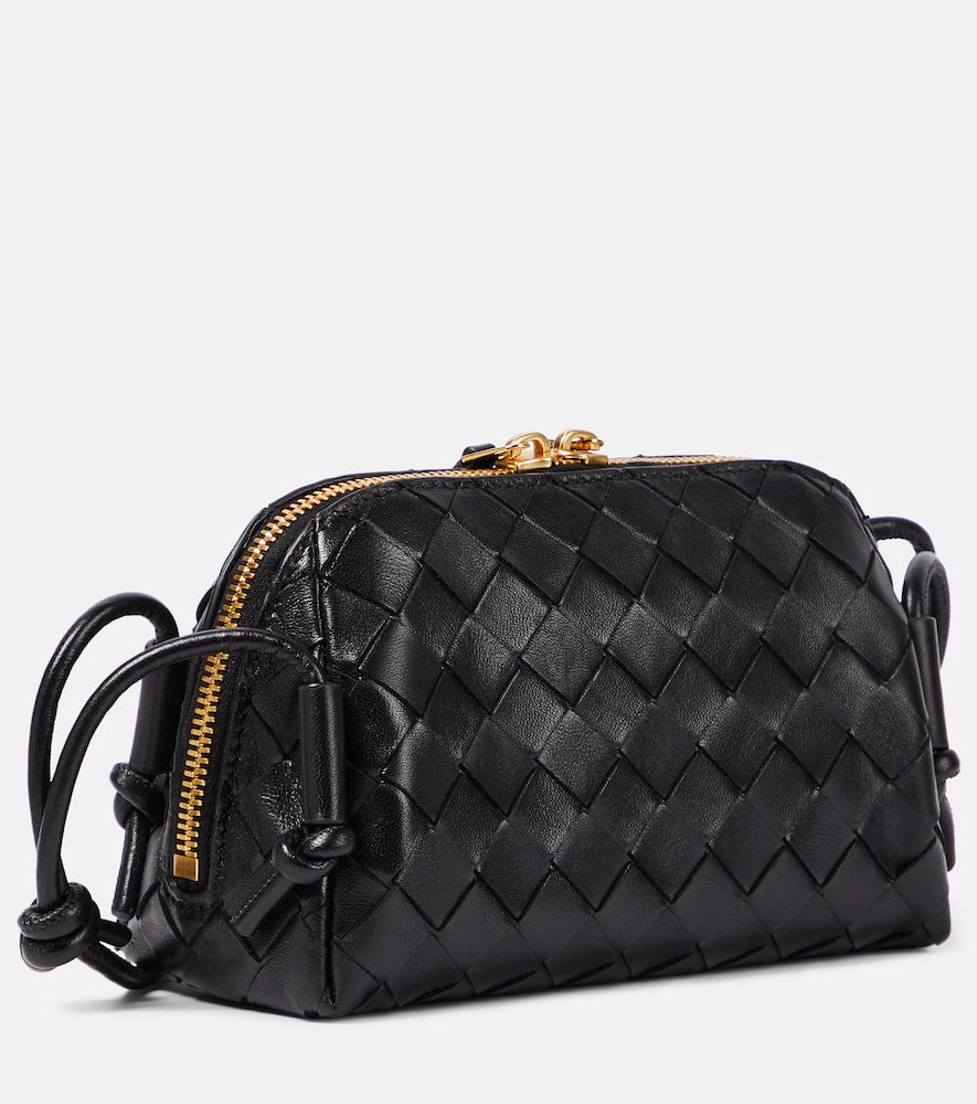 Material: calf leather. Lining: calf leather. Made in Italy. Designer color name: Black-Gold. Closure: two-way zipped top. Adjustable shoulder strap. Includes: dust bag. Shop the latest Bottega Veneta Crossbody Bags for women now.