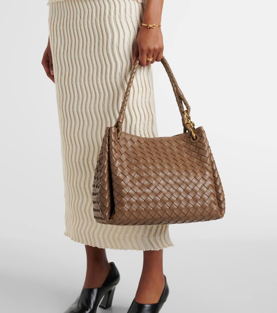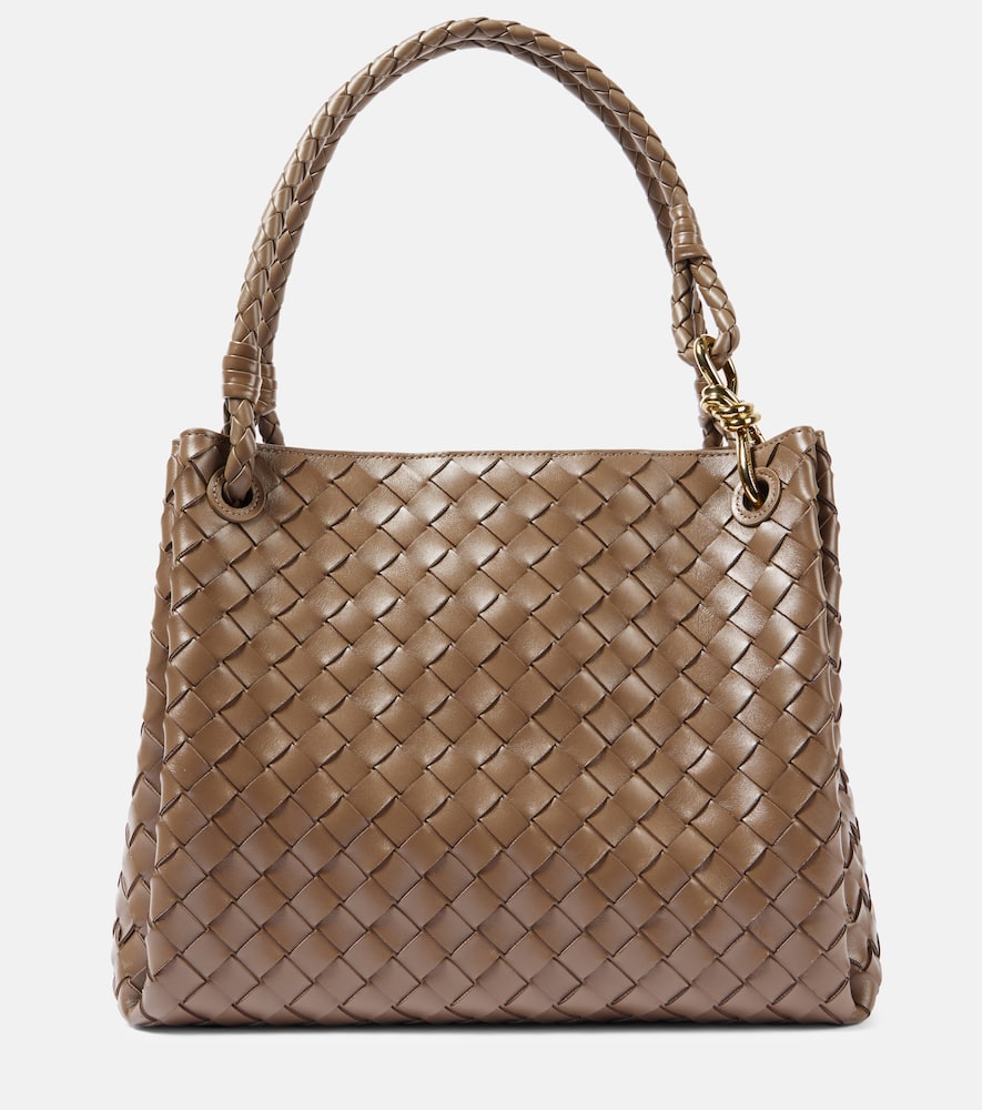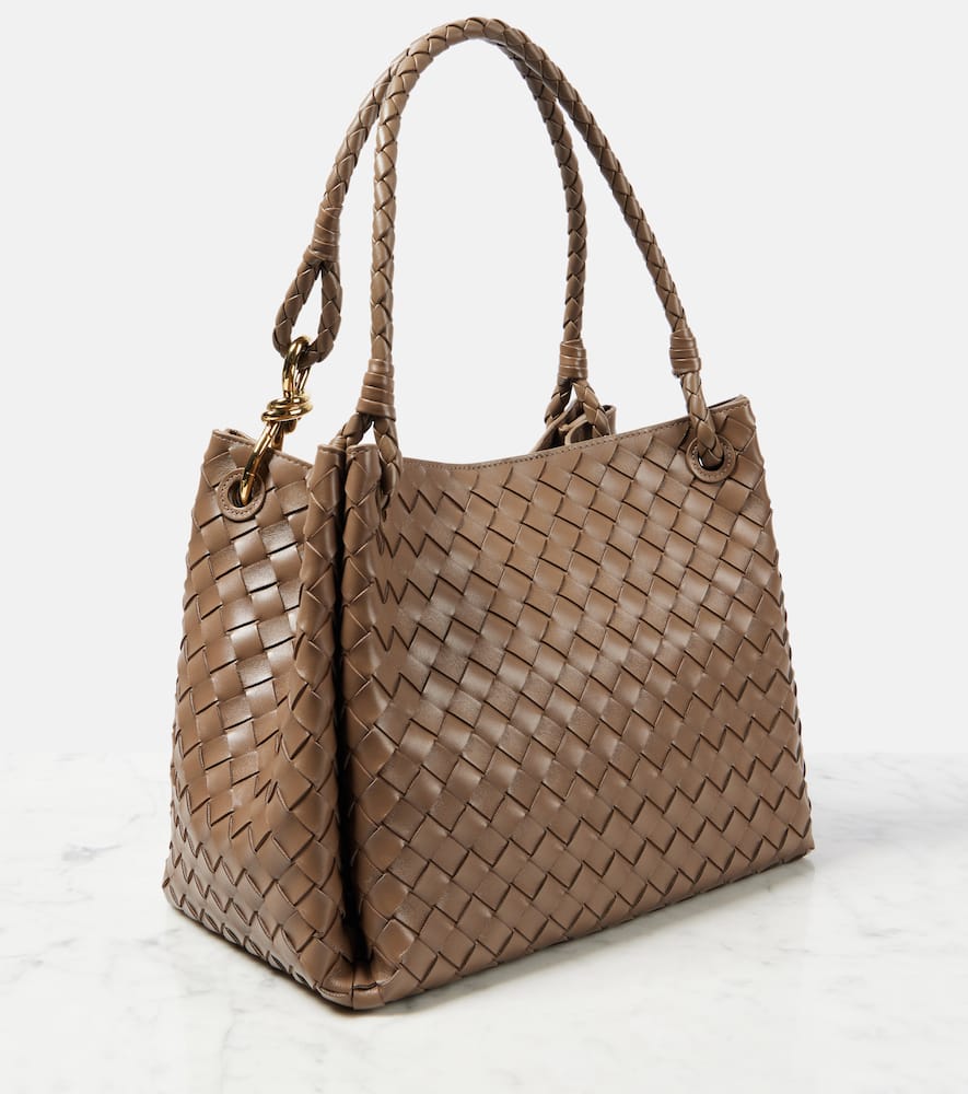 Material: lamb leather. Lining: lamb leather. Made in Italy. Designer color name: Pinecone-M Brass. Includes: dust bag. Top handles. Hardware color: brass. Closure: magnetic-tab fastening. Internal details: internal zipped pocket. Shop the latest Bottega Veneta Tote Bags for women now.