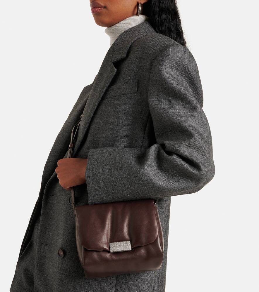 Material: lamb leather. Lining: suede. Made in Italy. Designer color name: Testa Di Moro. Closure: magnetic fastening. Internal details: internal zipped pocket. Adjustable shoulder strap. Comes with dust bag. Shop the latest Brunello Cucinelli Crossbody Bags for women now.