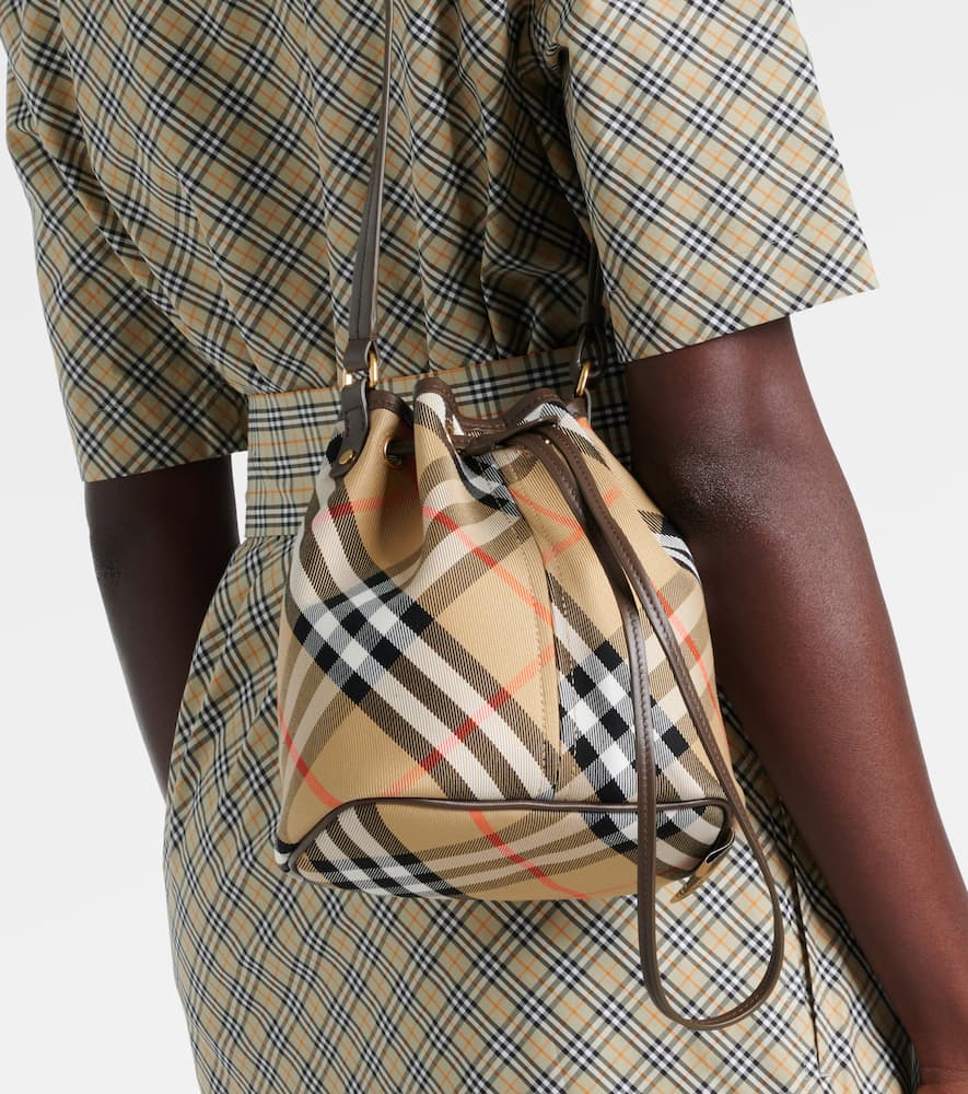 Material: fabric. Lining: fabric. Made in Italy. Designer color name: Sand. Adjustable shoulder strap. Includes: dust bag. Shop the latest Burberry Bucket Bags for women now.