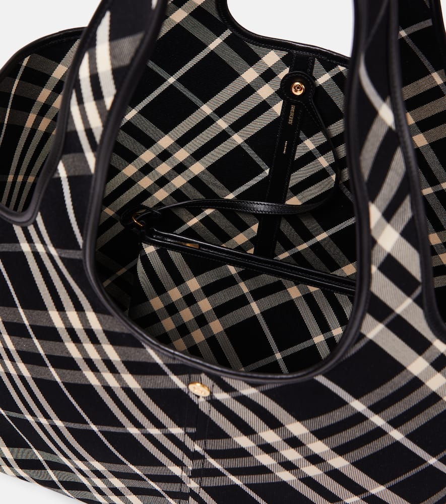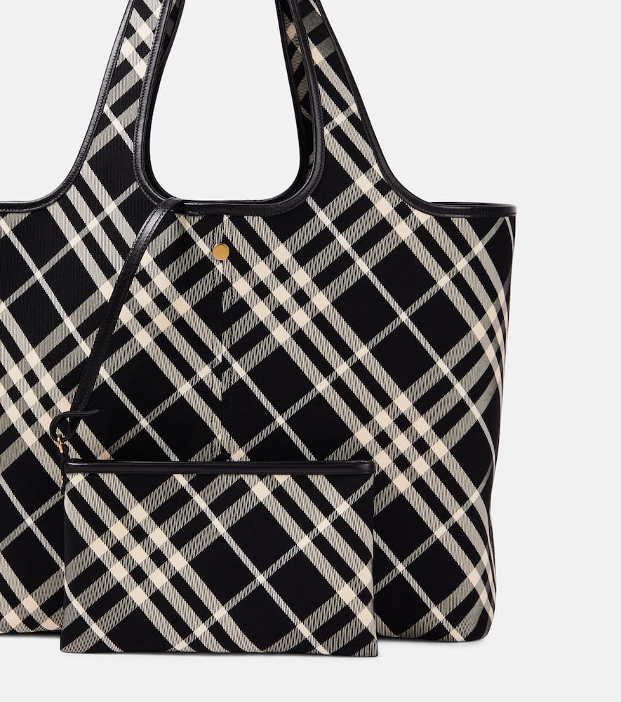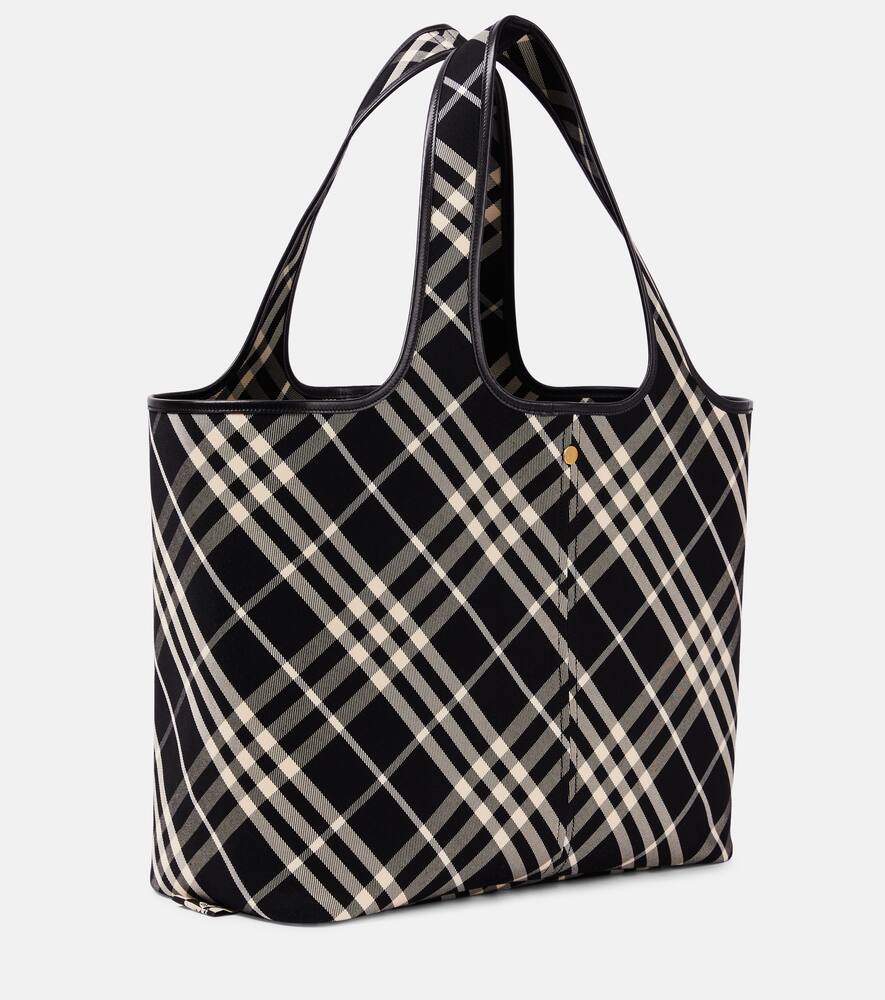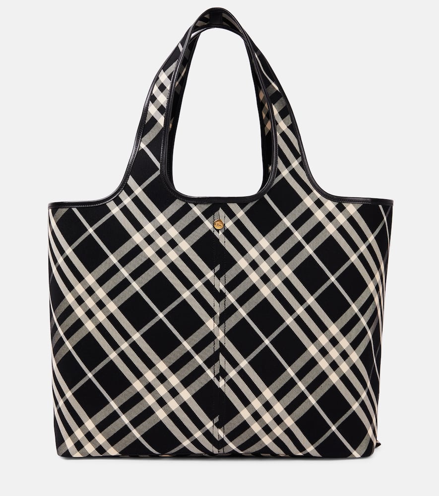 Material: fabric. Lining: unlined. Made in Italy. Designer color name: Black/Calico. Closure: snap-buttoned fastening. Top handles. Internal details: internal zipped pouch. Comes with dust bag. Trim: leather. Shop the latest Burberry Tote Bags for women now.
