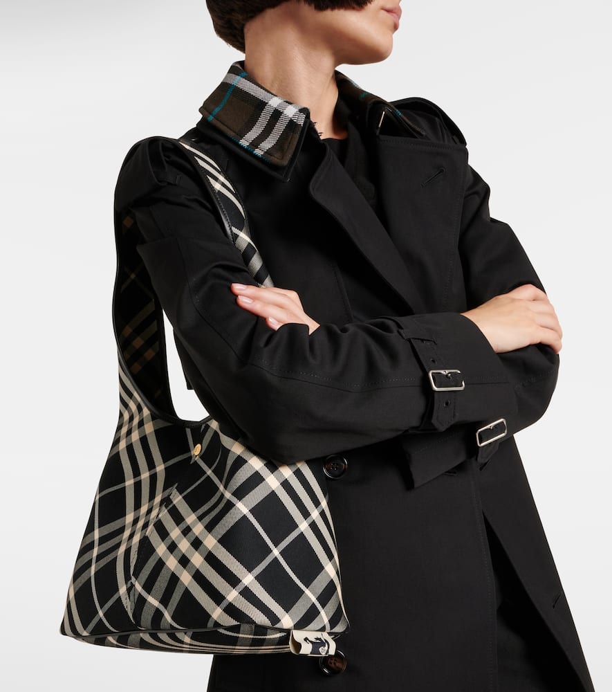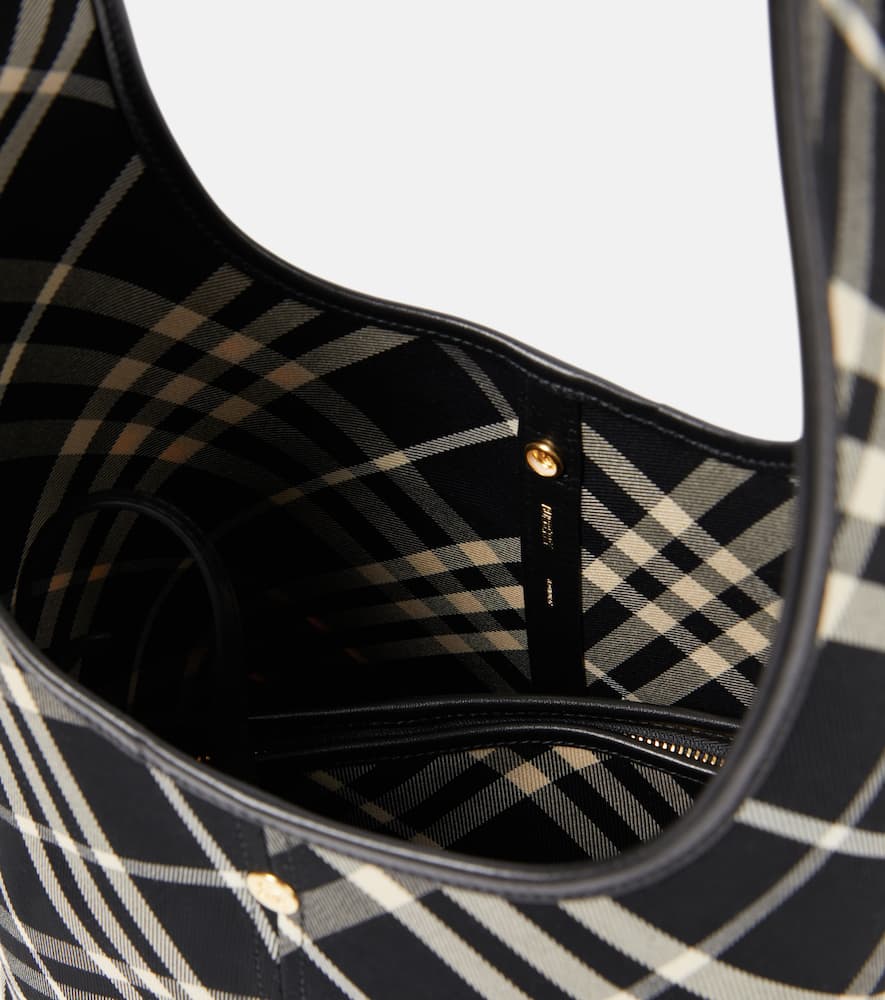 Material: fabric. Lining: unlined. Made in Italy. Designer color name: Black/Calico. Trim: leather. Internal details: internal pouch. Closure: snap-buttoned fastening. Shoulder strap. Includes: dust bag, box. Shop the latest Burberry Tote Bags for women now.