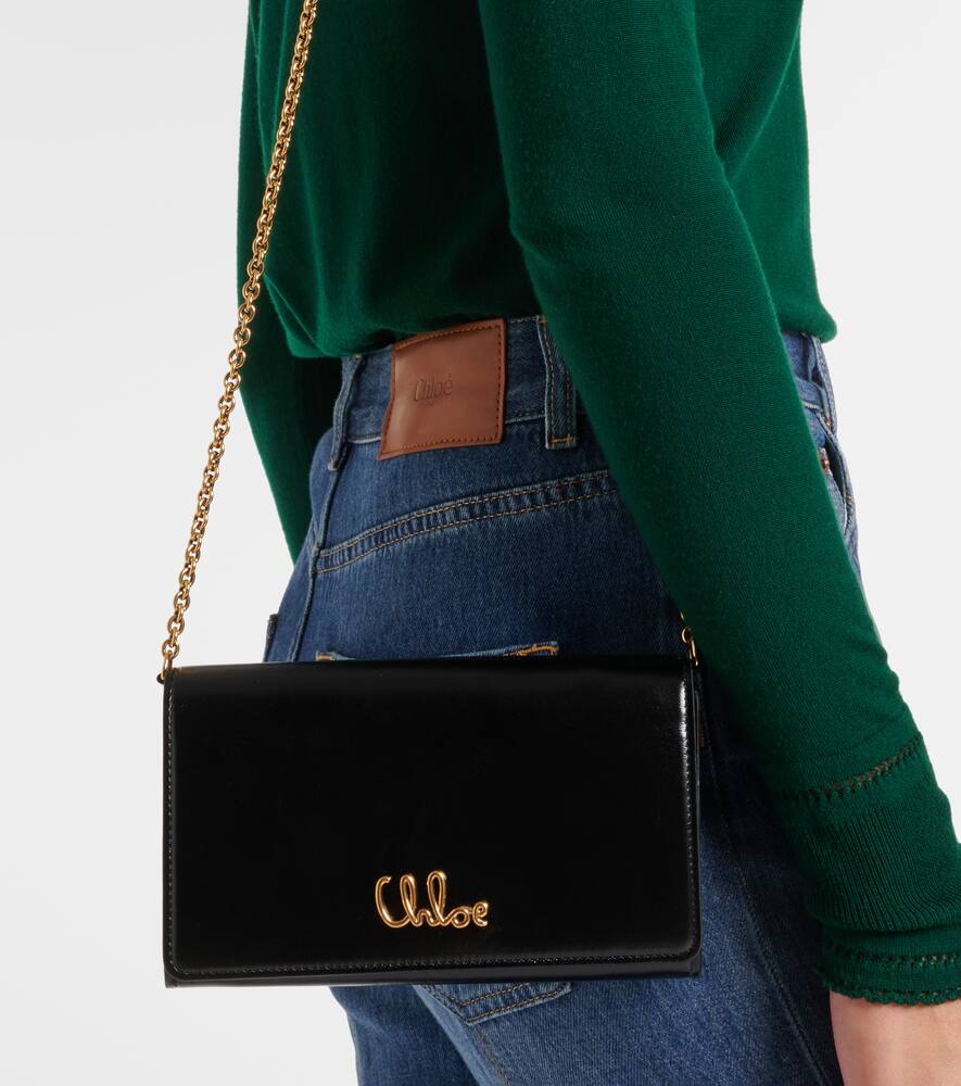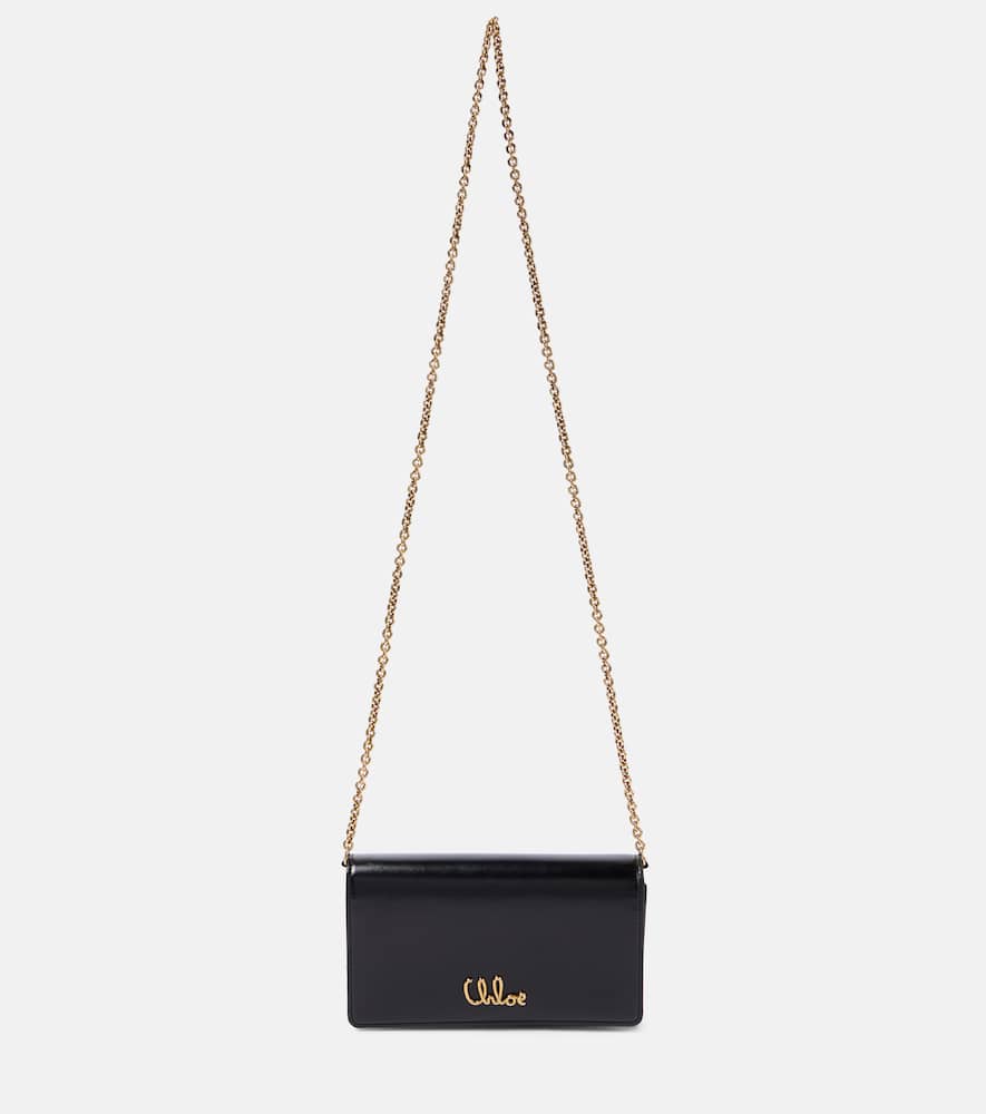 Material: leather. Lining: leather. Made in Spain. Designer color name: Black. Internal details: Card slots, three internal compartments, internal zipped pocket. Chain shoulder strap. Hardware color: gold. Closure: magnetic-tab fastening. Includes: dust bag. Shop the latest Chloe Crossbody Bags for women now.