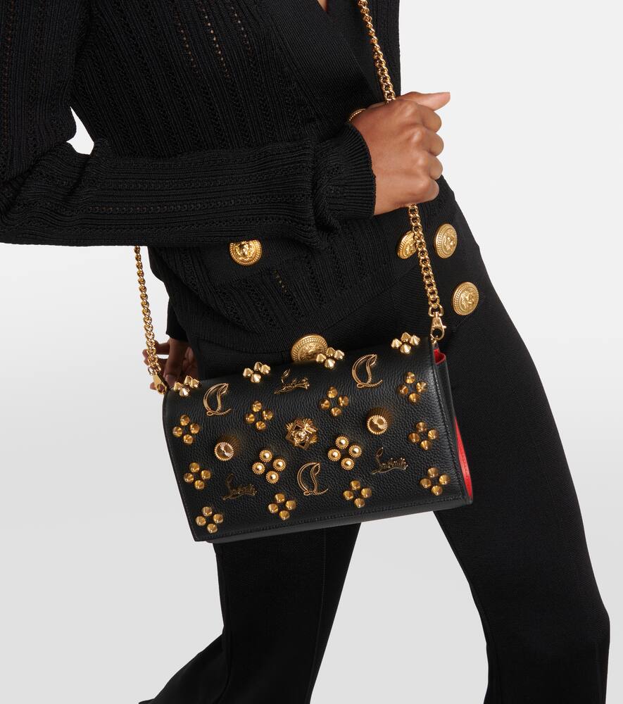 Internal details: internal zipped and slot pockets, leather lining. Made in Italy. Designer color name: Black/Gold. Comes with dust bag. Detachable chain shoulder strap. Color of chain strap: gold. Closure: snap-buttoned fastening. Material: leather. Comes with a box. Shop the latest Christian Louboutin Crossbody Bags for women now.