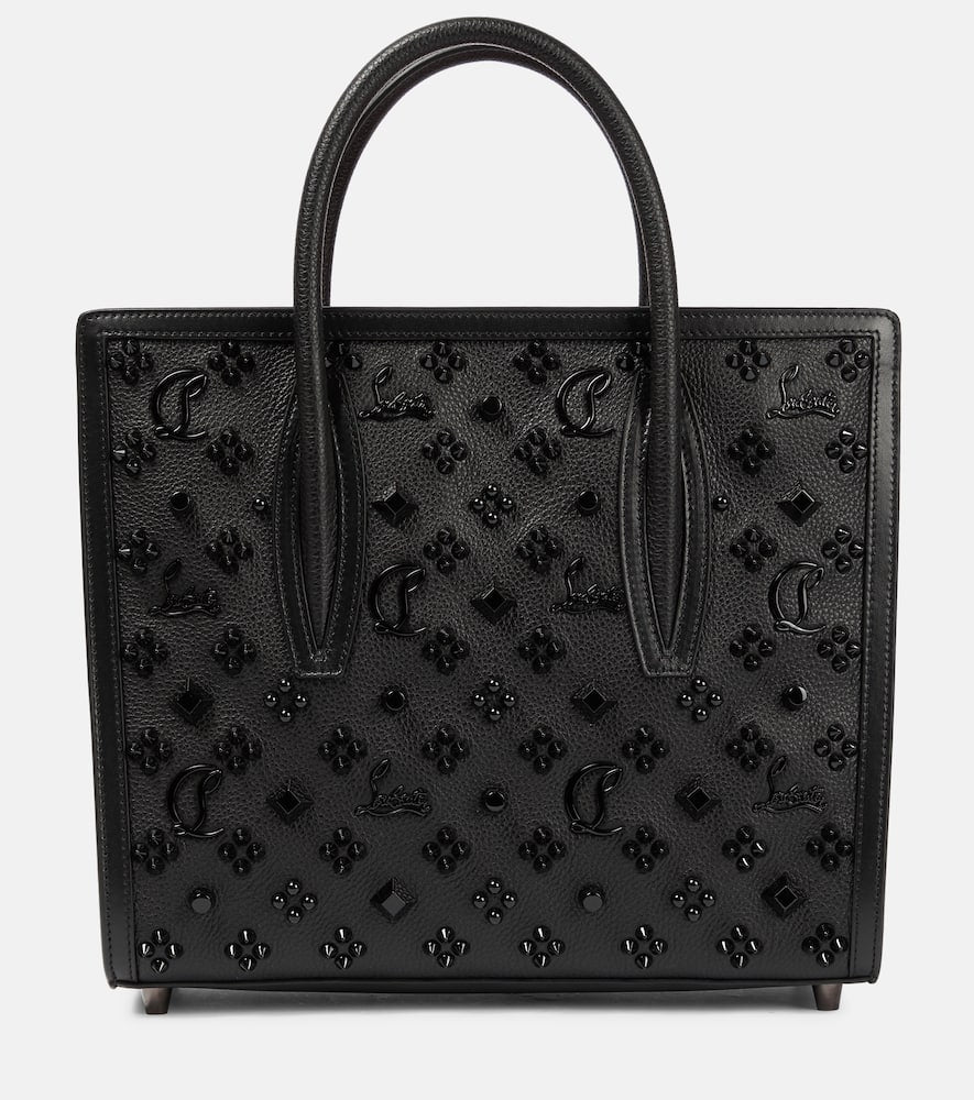 Internal details: internal zipped pocket, leather lining. Made in Italy. Designer color name: Black/Ultrablack. Comes with dust bag. Color of fastening: anthracite. Closure: zipped top. Detachable, adjustable shoulder strap, Top handles. Material: leather. Color of strap: black. Protective feet. Shop the latest Christian Louboutin Tote Bags for women now.