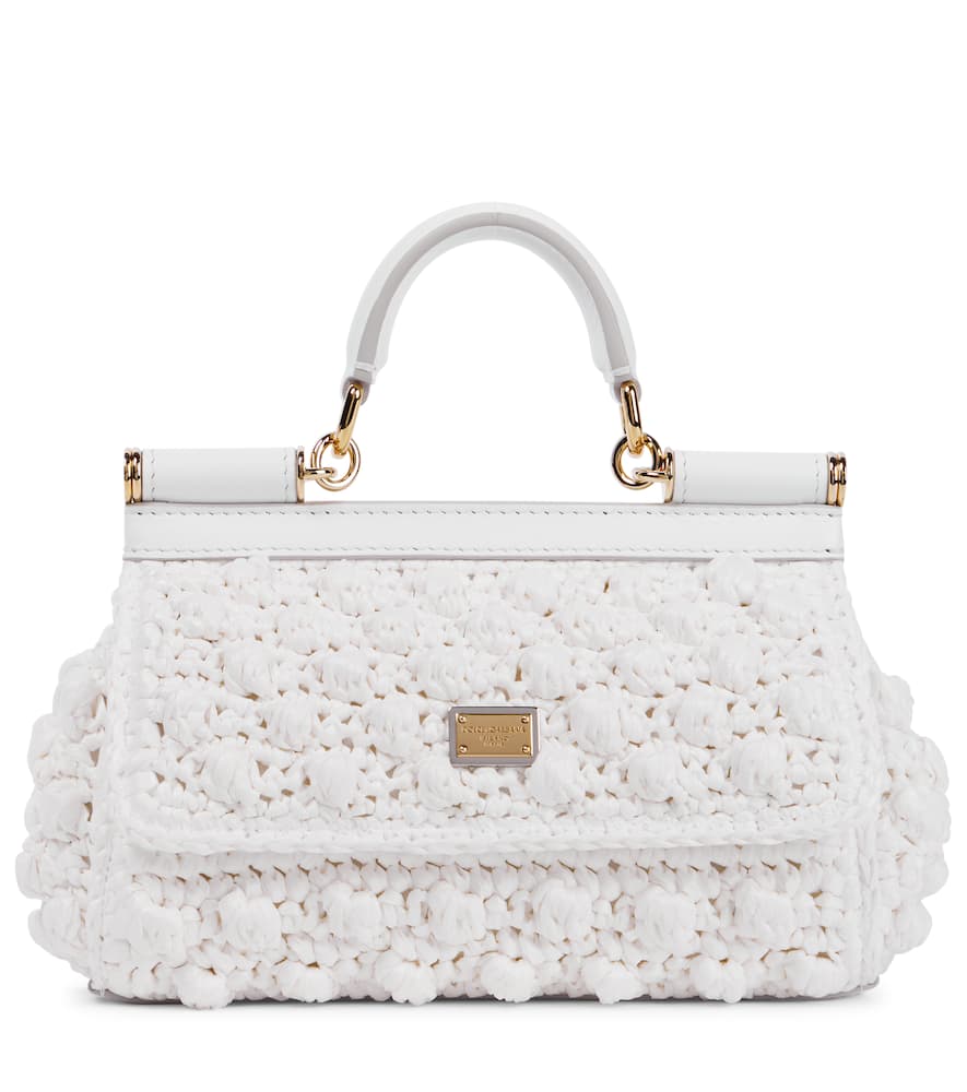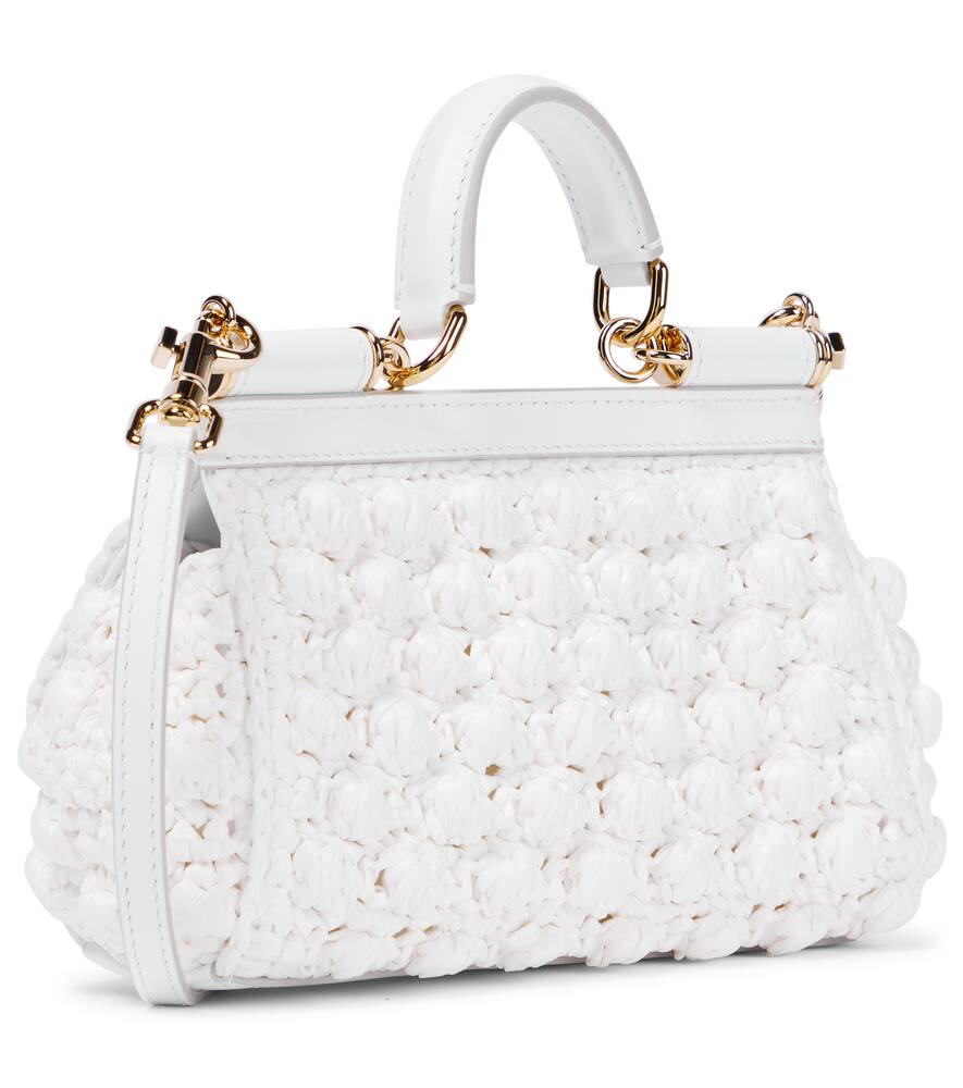 Top handle, Detachable, adjustable shoulder strap. Internal details: internal slot pocket, fabric lining. Designer color name: Bianco/Bianco. Made in Italy. Closure: magnetic fastening. Color of fastening: pale gold. Material: fabric. Trim: leather. Protective leather bottom. Shop the latest Dolce&Gabbana Top-Handle Bags for women now.