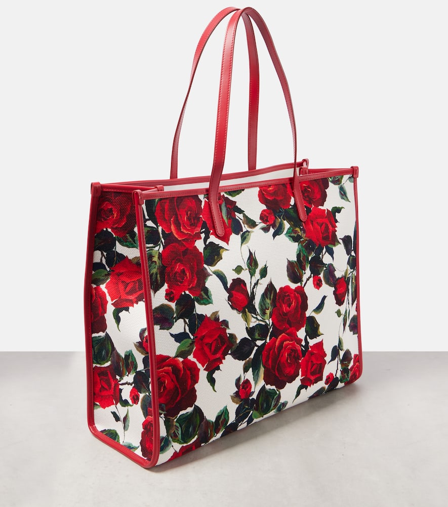 Material: fabric. Lining: fabric. Made in Italy. Designer color name: Rosa Rossa F.Bco. Trim: leather. Closure: magnetic-tab fastening. Top handles. Internal details: internal zipped pocket. Hardware color: gold. Includes: dust bag. Shop the latest Dolce&Gabbana Tote Bags for women now.