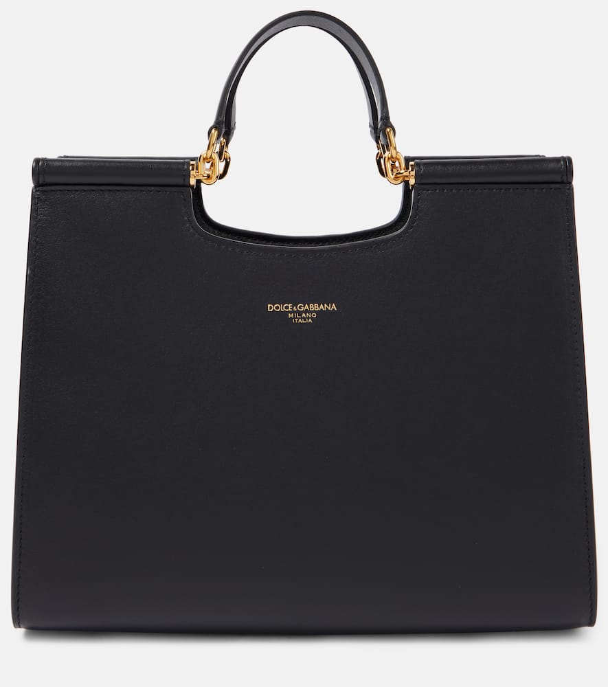 Material: leather. Lining: leather. Made in Italy. Designer color name: Nero. Protective feet. Top handles, Detachable, adjustable shoulder strap. Closure: open top. Hardware color: gold. Includes: dust bag. Shop the latest Dolce&Gabbana Top-Handle Bags for women now.