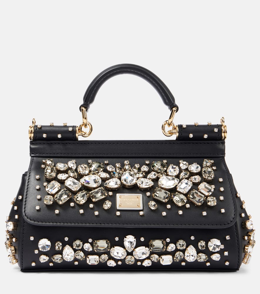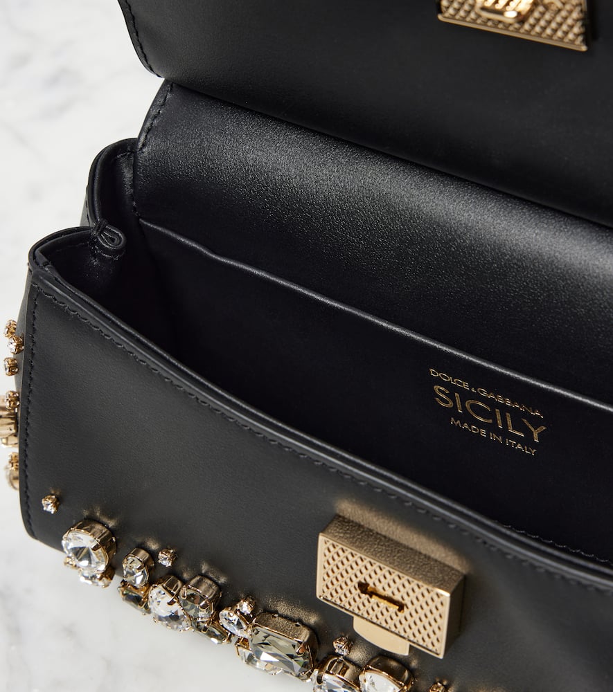 Material: leather. Lining: leather. Made in Italy. Designer color name: Crystal /Black Diam. Closure: push-lock fastening. Internal details: internal slot pocket. Top handle, Detachable shoulder strap. Hardware color: gold. Includes: box, dust bag. Shop the latest Dolce&Gabbana Top-Handle Bags for women now.