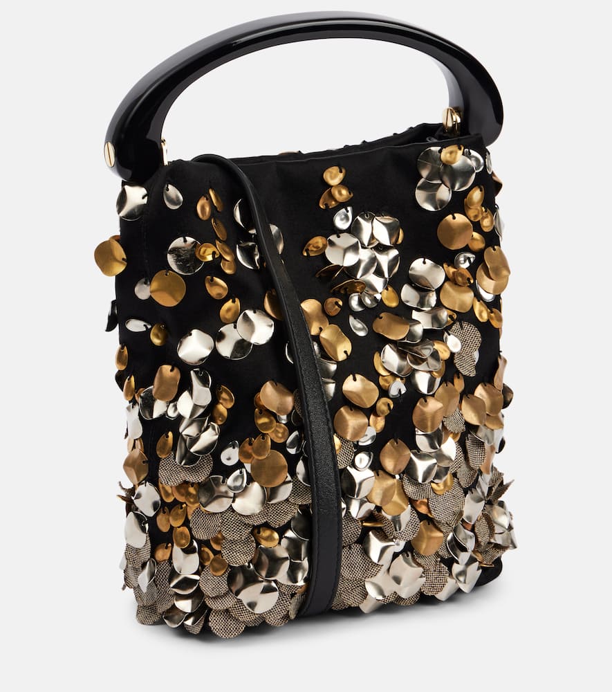 Material: fabric. Lining: suede. Made in India. Designer color name: Black. Top handle, Detachable shoulder strap. Closure: magnetic-tab fastening. Hardware color: gold. Internal details: internal slot pockets. Includes: dust bag. Shop the latest Dries Van Noten Top-Handle Bags for women now.