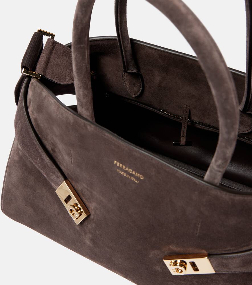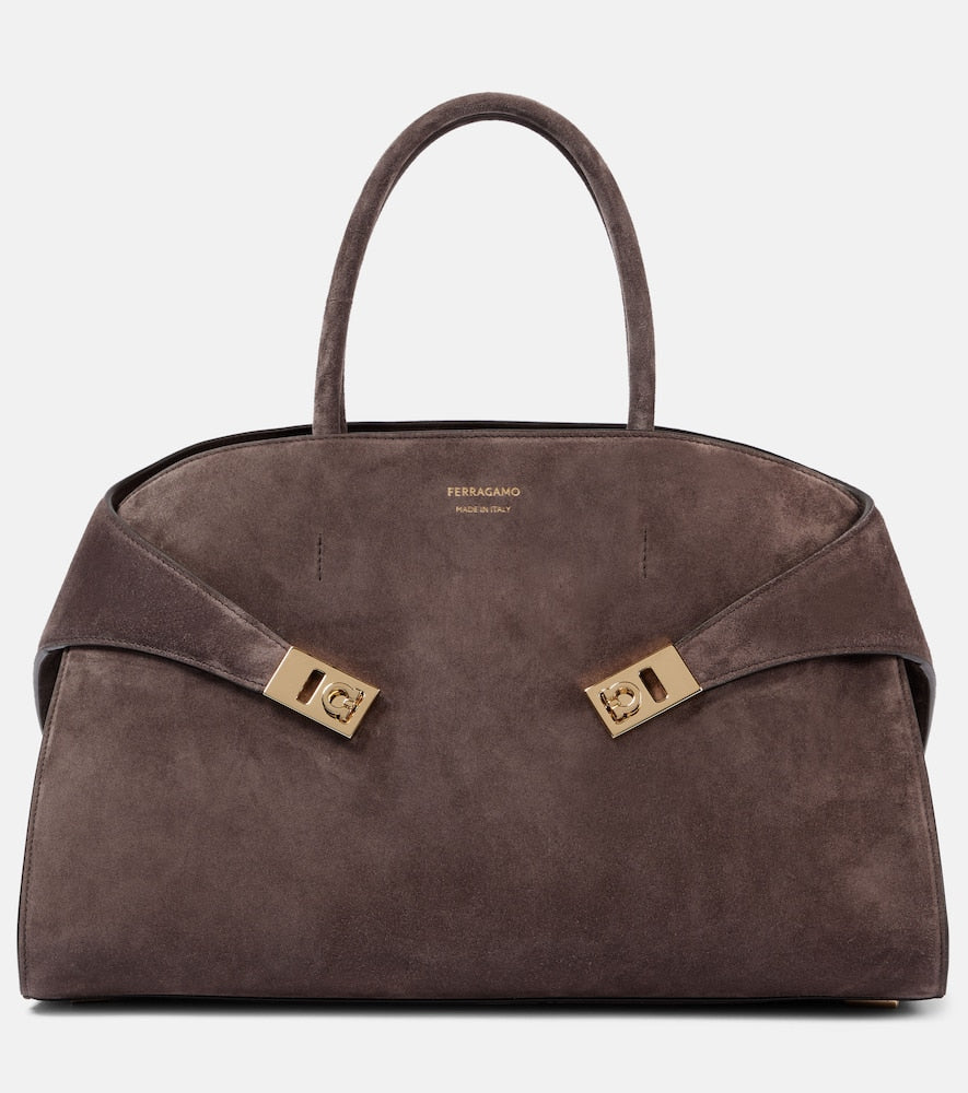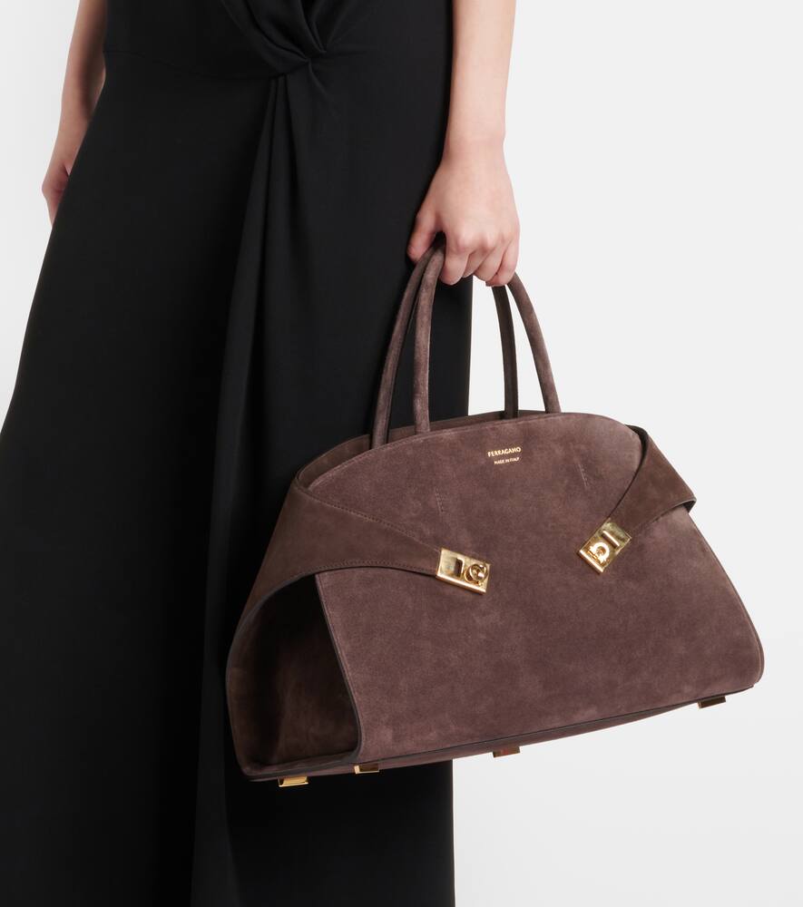 Material: leather. Lining: leather. Made in Italy. Designer color name: Testa Di Moro/ Testa Di Moro. Top handles, Detachable, adjustable shoulder strap. Internal details: internal zipped pocket. Includes: dust bag. Hardware color: gold. Closure: toggle fastening. Shop the latest Ferragamo Top-Handle Bags for women now.