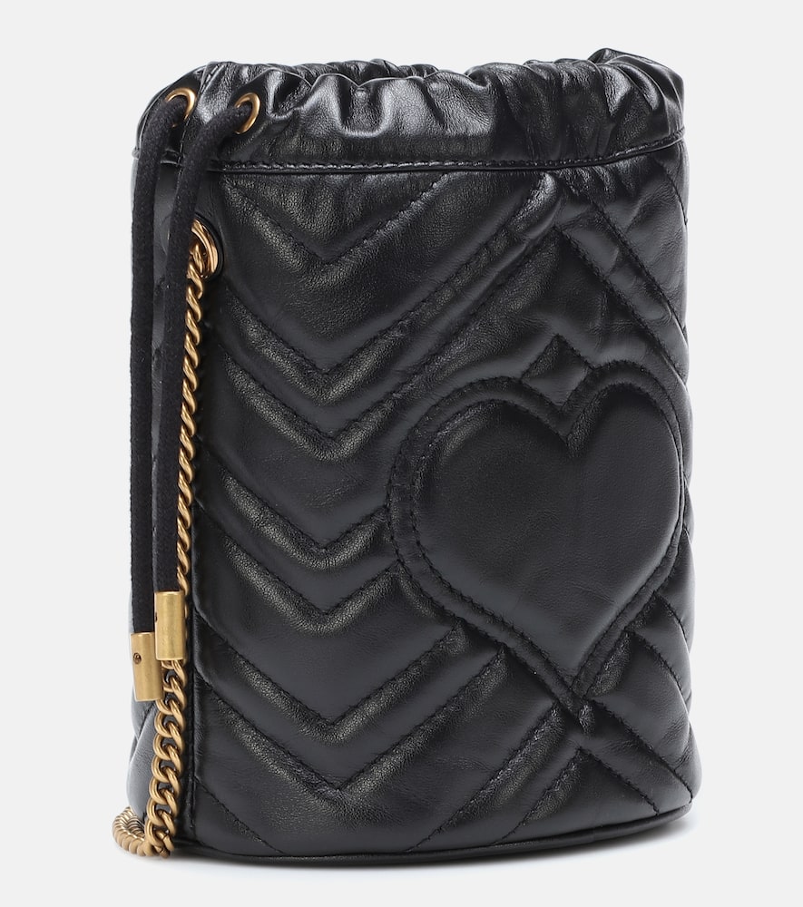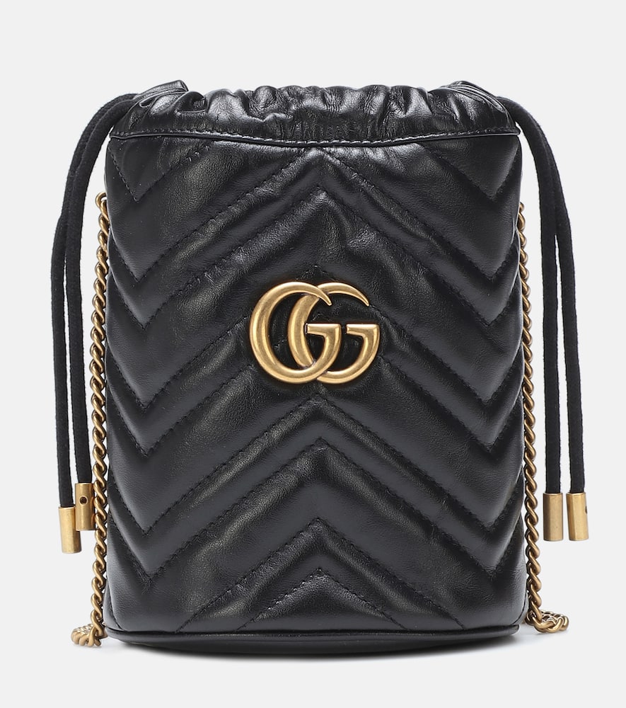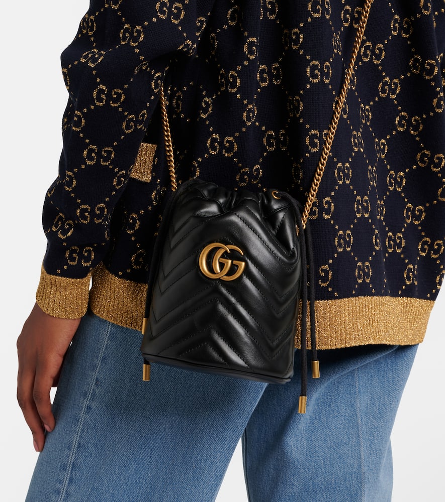 Color of fastening: gold. Made in Italy. Designer color name: Nero/Nero/Nero. Comes with dust bag. Material: leather. Closure: drawstring top. Internal details: Card slots, suede lining. Shop the latest Gucci Bucket Bags for women now.