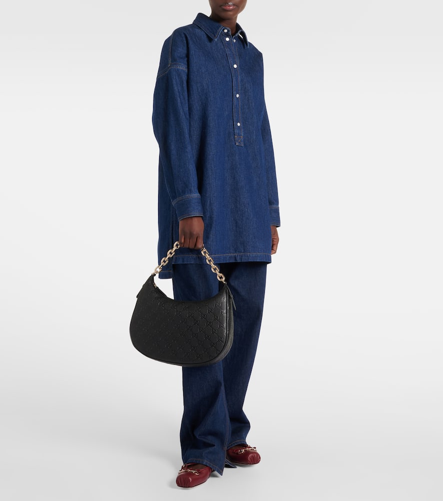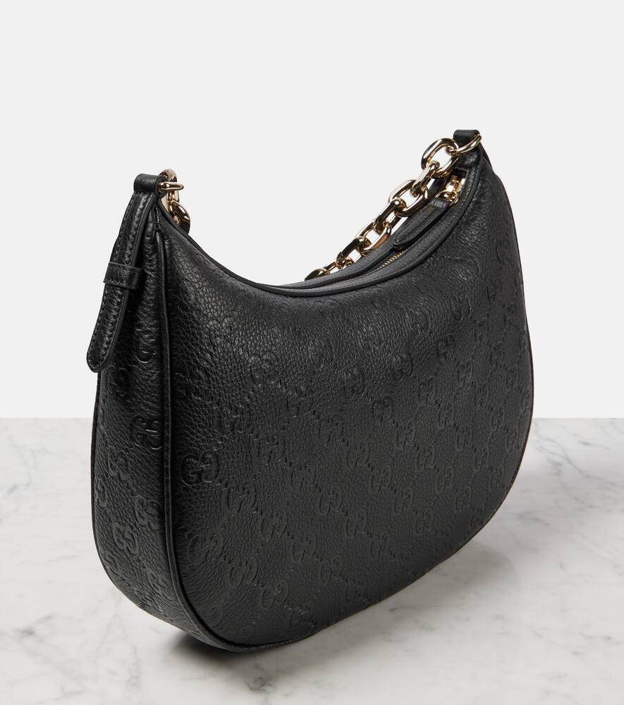 Material: leather. Lining: fabric. Made in Italy. Designer color name: Black / Black. Includes: dust bag. Closure: zipped top. Detachable, adjustable shoulder strap, Top handle. Hardware color: gold. Internal details: internal zipped pocket. Shop the latest Gucci Top-Handle Bags for women now.