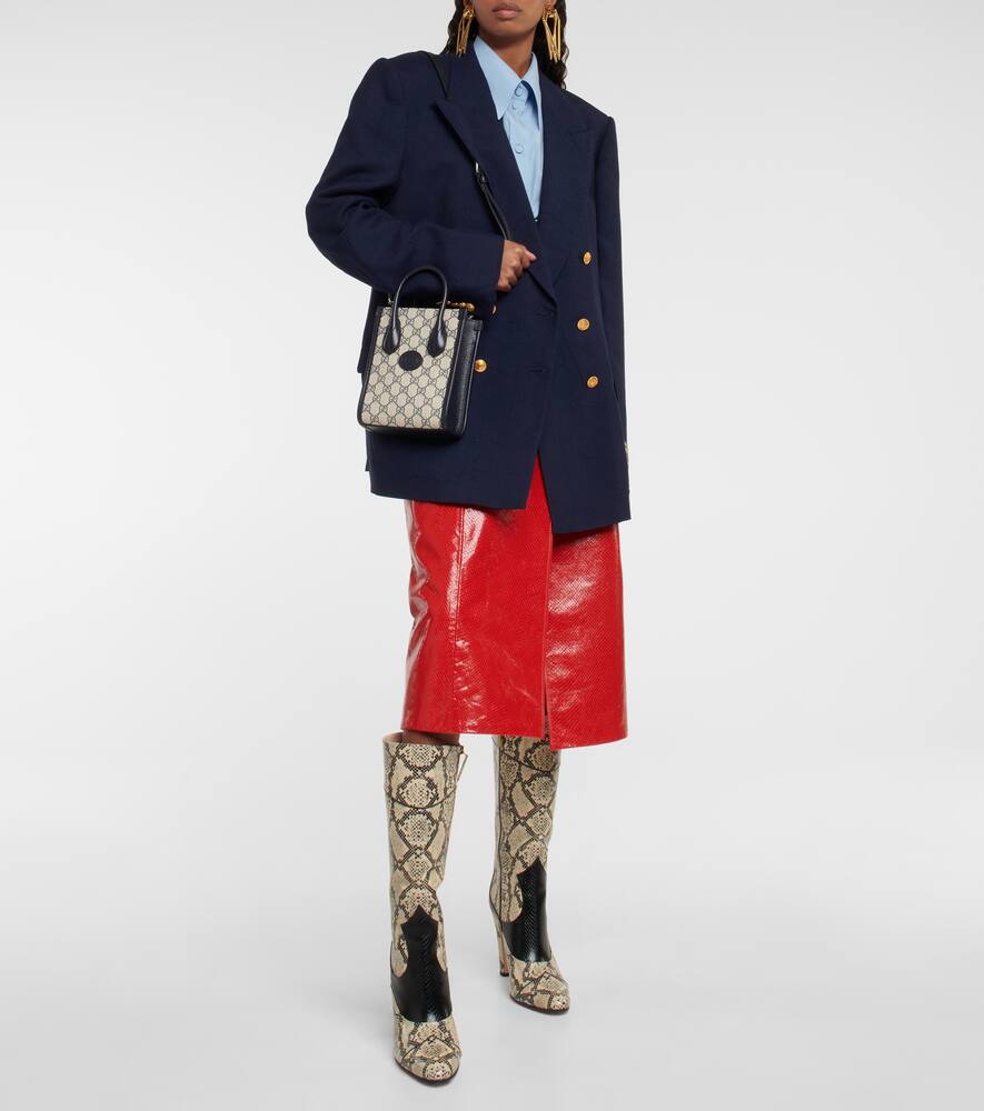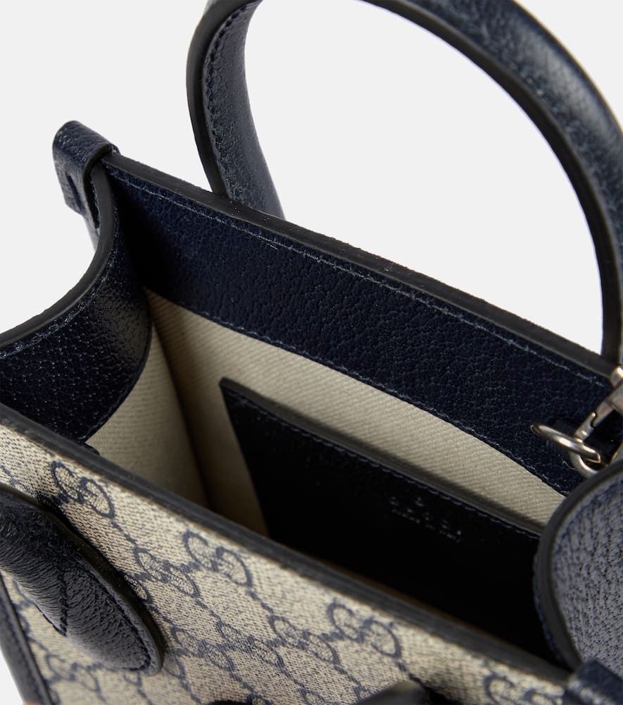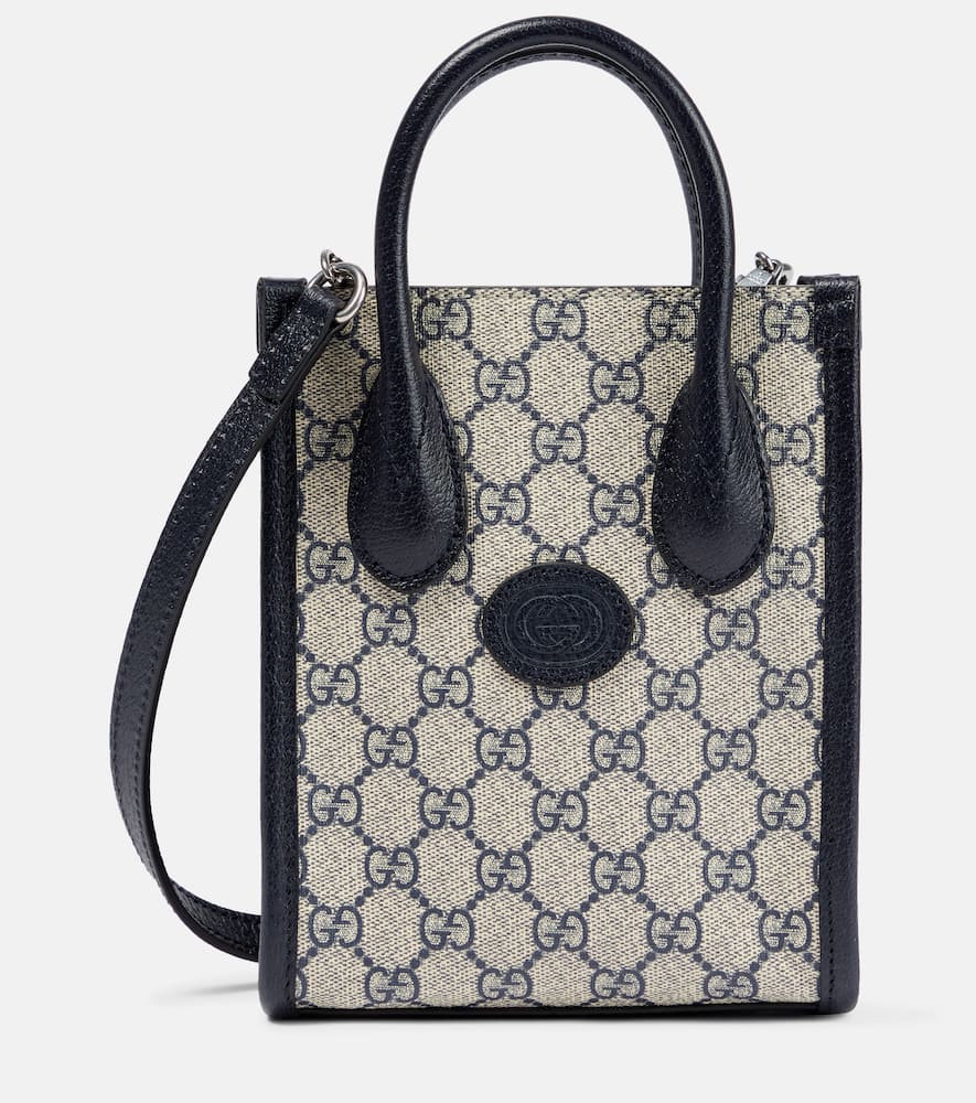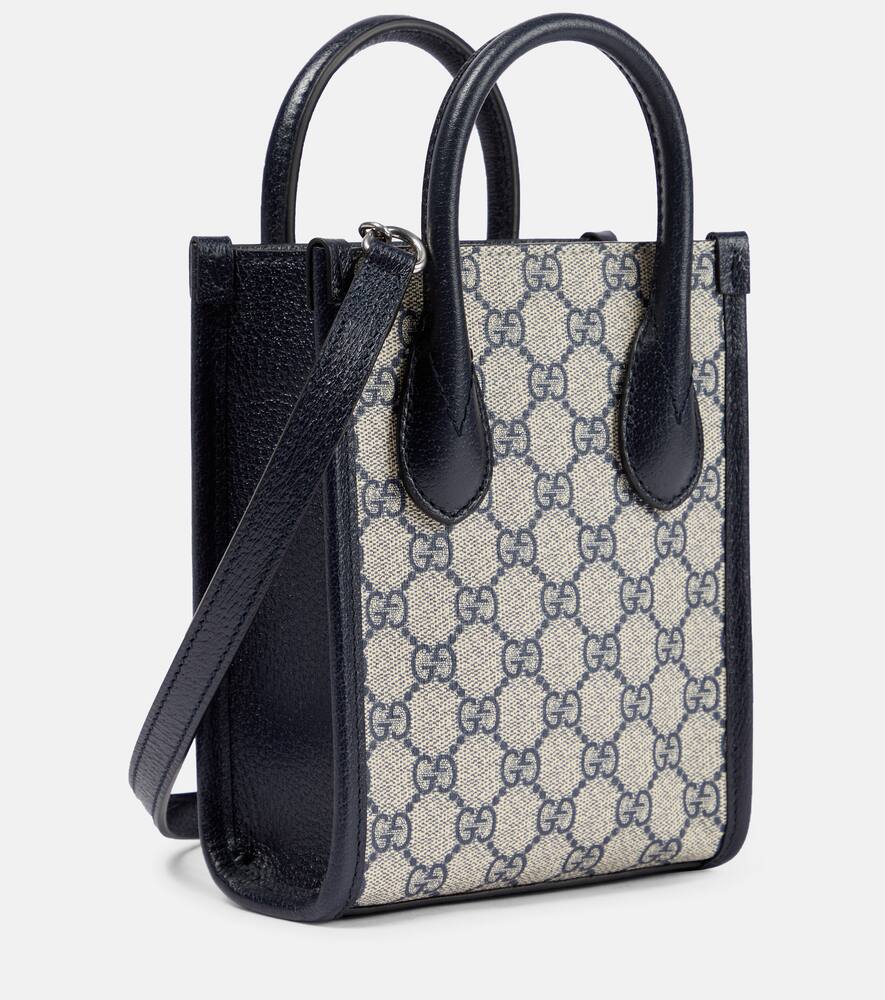 Detachable shoulder strap, Top handles. Internal details: internal slot pocket, fabric lining. Designer color name: Beige Blu/Blu/Brb. Made in Italy. Comes with dust bag. Closure: open top. Material: fabric. Trim: leather. Shop the latest Gucci Top-Handle Bags for women now.