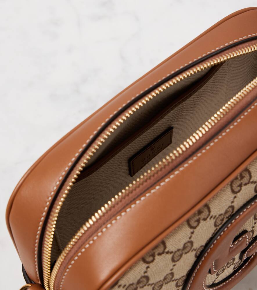 Material: canvas. Lining: fabric. Made in Italy. Designer color name: Beige Ebony/ Sundial. Adjustable shoulder strap. Closure: zipped top. Hardware color: gold. Internal details: internal slot pocket. Includes: dust bag. Trim: leather. Shop the latest Gucci Crossbody Bags for women now.