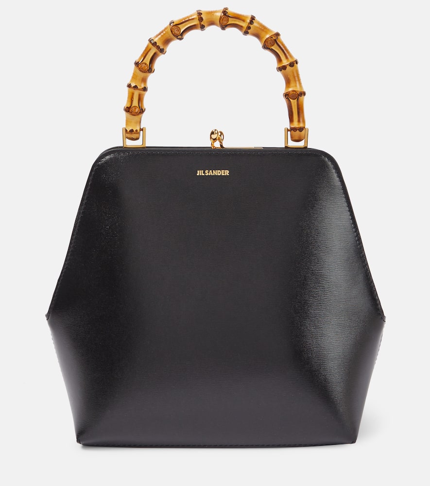 Material: leather. Lining: leather. Made in Italy. Designer color name: Black. Top handle. Internal details: internal zipped pocket. Closure: snap-clasp fastening. Includes: dust bag. Shop the latest Jil Sander Top-Handle Bags for women now.