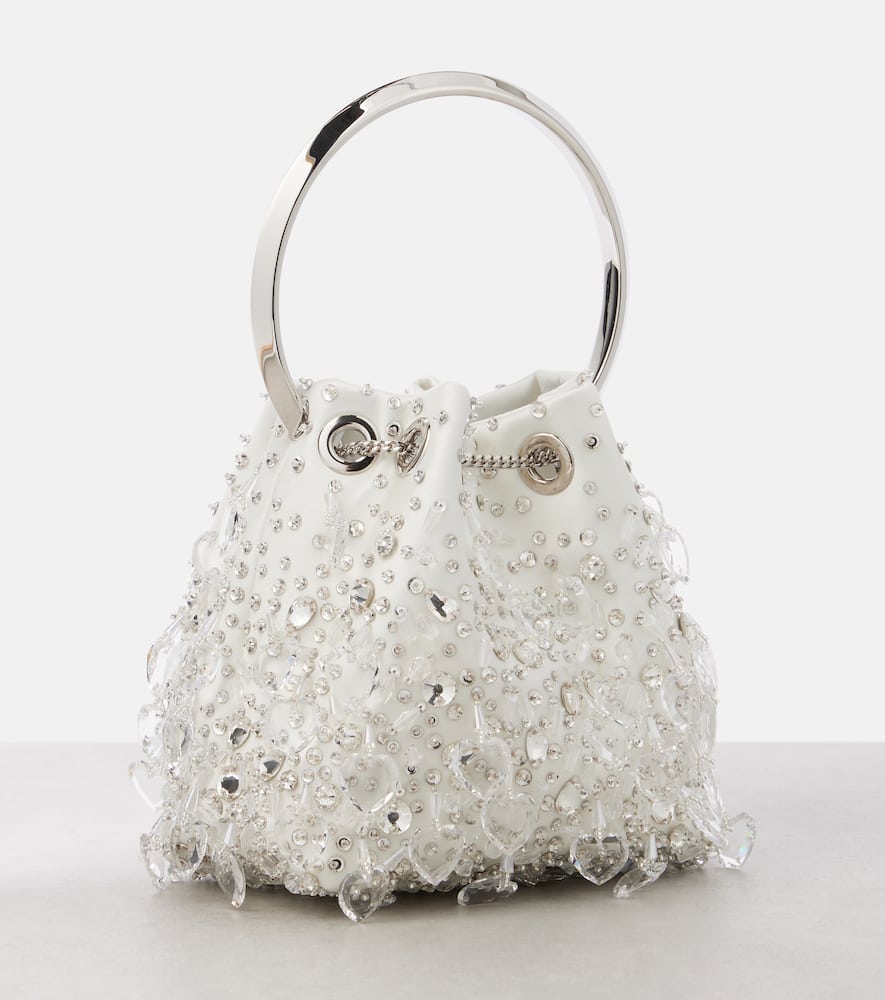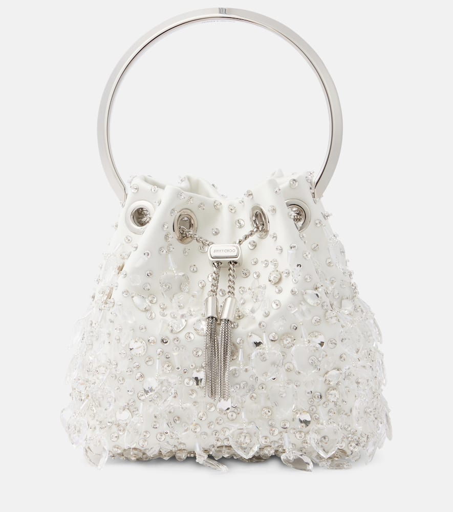 Material: fabric. Lining: fabric. Made in Italy. Designer color name: Latte/ Silver. Shoulder straps. Shop the latest Jimmy Choo Top-Handle Bags for women now.