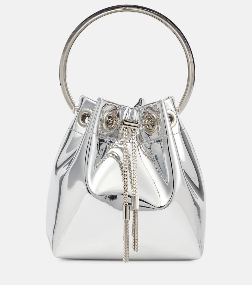 Jimmy Choo Bon Bon mirrored faux leather bucket bag. Shop Jimmy Choo Top-Handle Bags for women now.