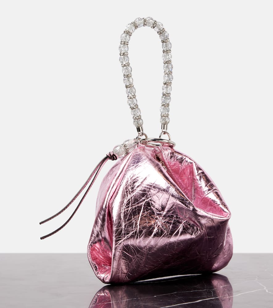 Material: leather. Lining: fabric. Made in Italy. Designer color name: Pink. Wrist strap. Closure: zipped top. Includes: dust bag. Shop the latest Jimmy Choo Top-Handle Bags for women now.