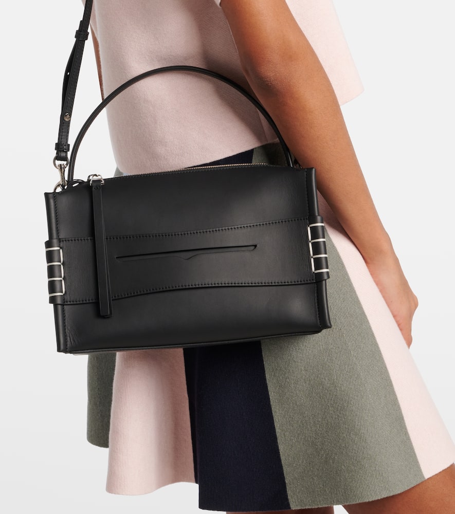 Material: leather. Lining: suede. Made in Italy. Designer color name: Black. Closure: zipped top. Internal details: internal slot pocket. Hardware color: silver. Includes: dust bag. Top handle, Detachable shoulder strap. Shop the latest JW Anderson Top-Handle Bags for women now.