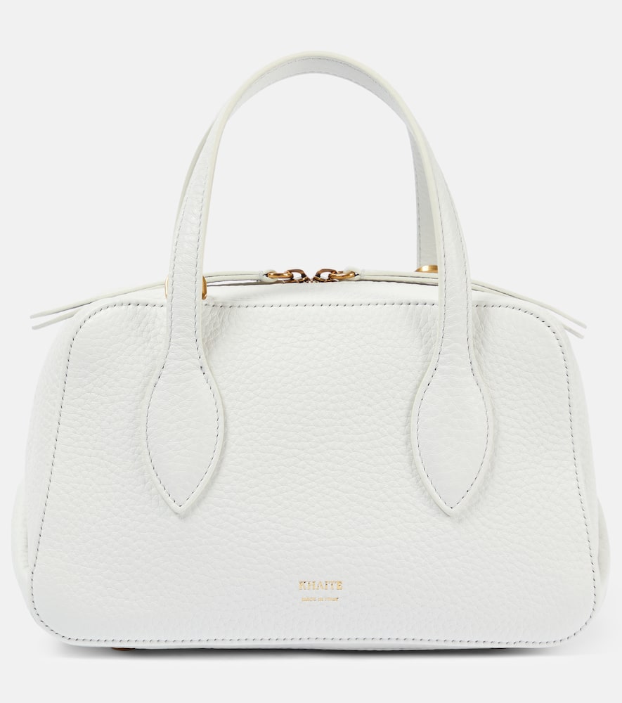 Material: leather. Lining: fabric. Made in Italy. Designer color name: Optic White. Closure: two-way zipped top. Top handles, Detachable, adjustable shoulder strap. Internal details: internal slot pockets. Protective feet. Includes: dust bag. Shop the latest Khaite Top-Handle Bags for women now.