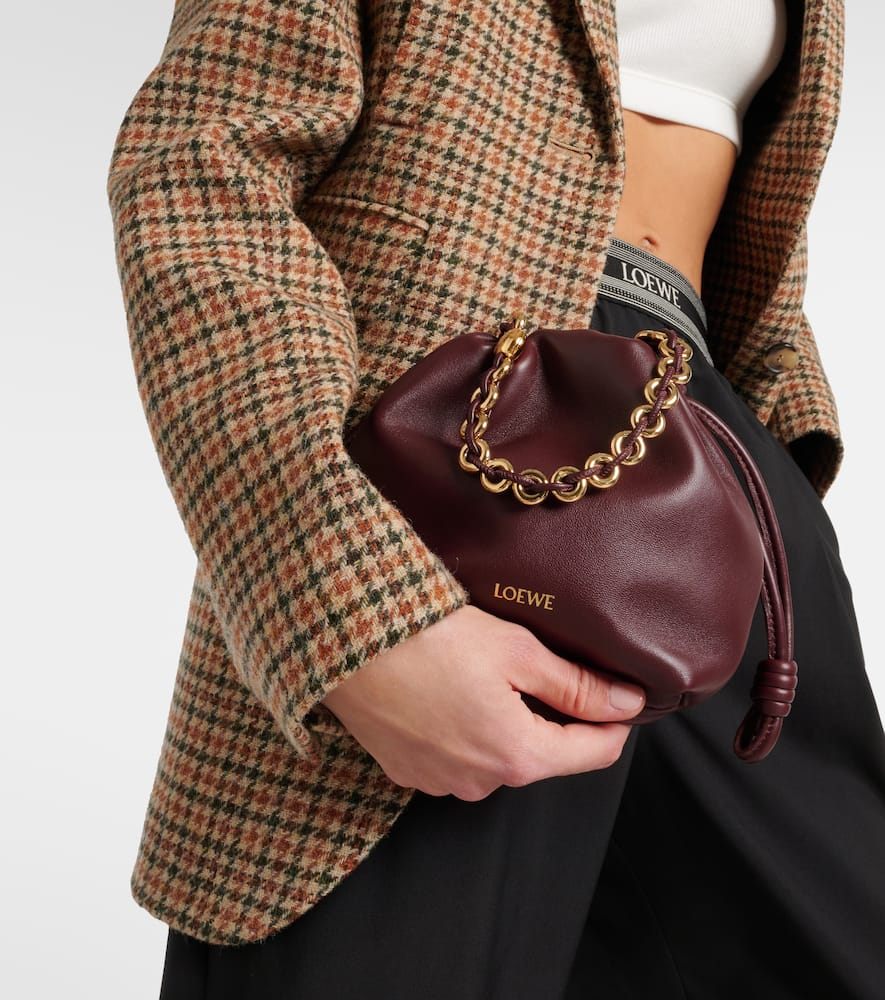 Material: leather. Lining: suede. Made in Spain. Designer color name: Dark Burgundy. Closure: toggle fastening, magnetic fastening. Detachable, adjustable shoulder strap. Includes: dust bag. Shop the latest Loewe Top-Handle Bags for women now.