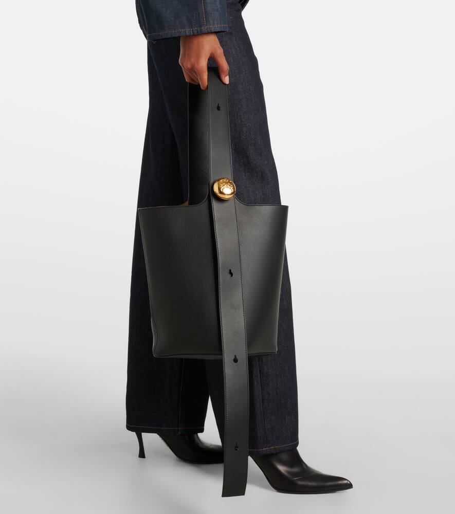 Material: leather. Lining: unlined. Made in Spain. Designer color name: Black. Internal details: internal slot pocket. Closure: open top. Adjustable top handle. Includes: box. Shop the latest Loewe Top-Handle Bags for women now.