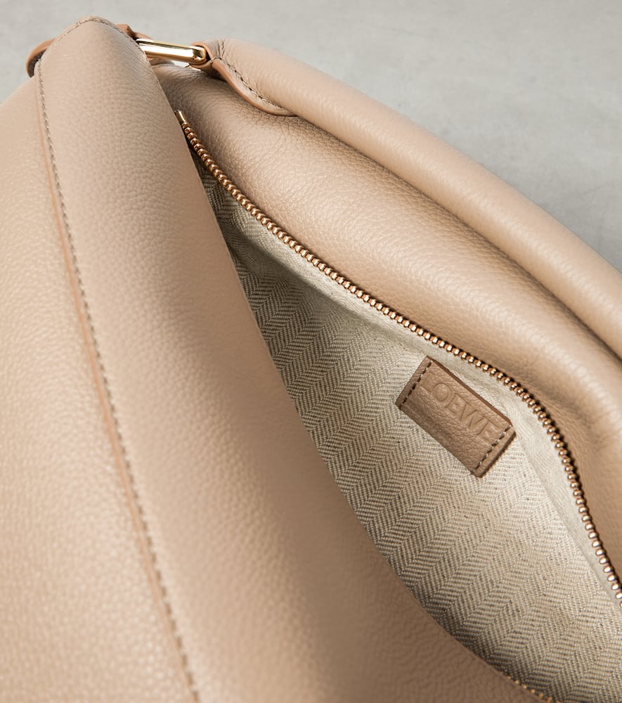 Material: leather. Lining: fabric. Made in Spain. Designer color name: Sand. Internal details: Card slots. Detachable, adjustable shoulder strap, Top handle. Zipped back pocket. Protective feet. Closure: zipped top. Includes: dust bag. Hardware color: gold. Color of fastening: gold. Shop the latest Loewe Top-Handle Bags for women now.