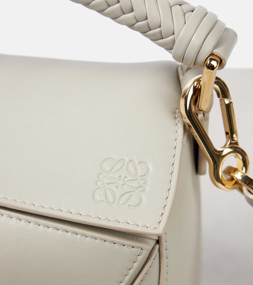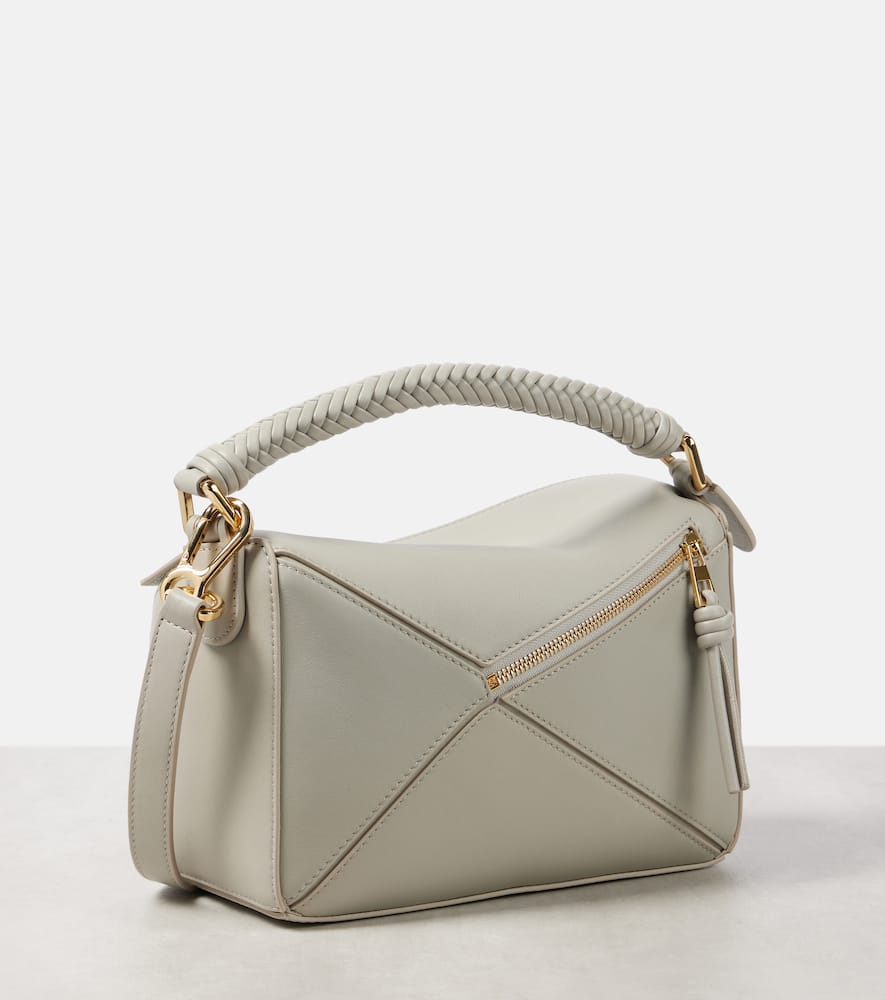Material: leather. Lining: leather. Made in Spain. Designer color name: Shell Grey. Includes: dust bag. Hardware color: gold. Closure: zipped top. Top handle, Detachable, adjustable shoulder strap. Zipped back pocket. Internal details: internal slot pocket. Shop the latest Loewe Top-Handle Bags for women now.