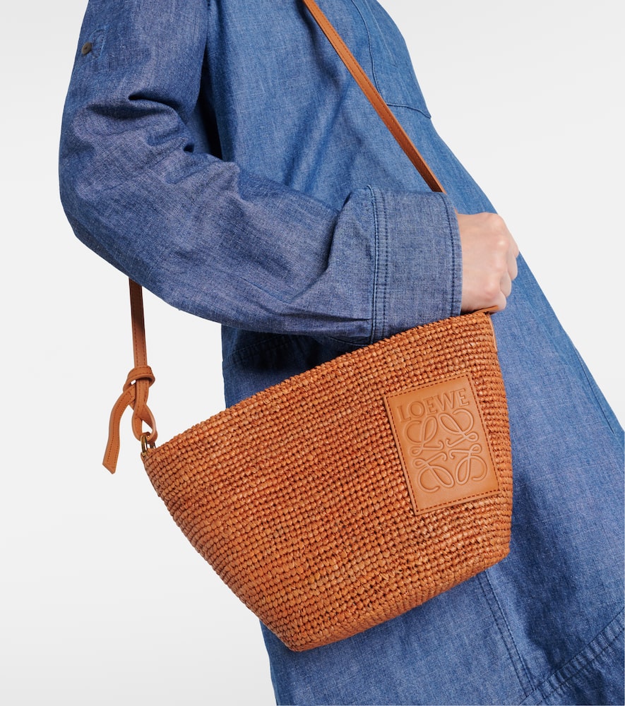Material: raffia. Lining: fabric. Made in Madagascar . Designer color name: Honey Gold. Closure: zipped top. Leather shoulder strap. Includes: dust bag. Shop the latest Loewe Crossbody Bags for women now.