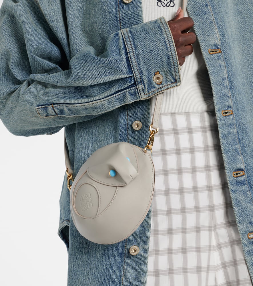 Material: leather. Lining: fabric. Made in Spain. Designer color name: Shell Gray. Closure: zipped top. Hardware color: gold. Color of fastening: gold. Includes: dust bag. Detachable, adjustable shoulder strap. Shop the latest Loewe Crossbody Bags for women now.