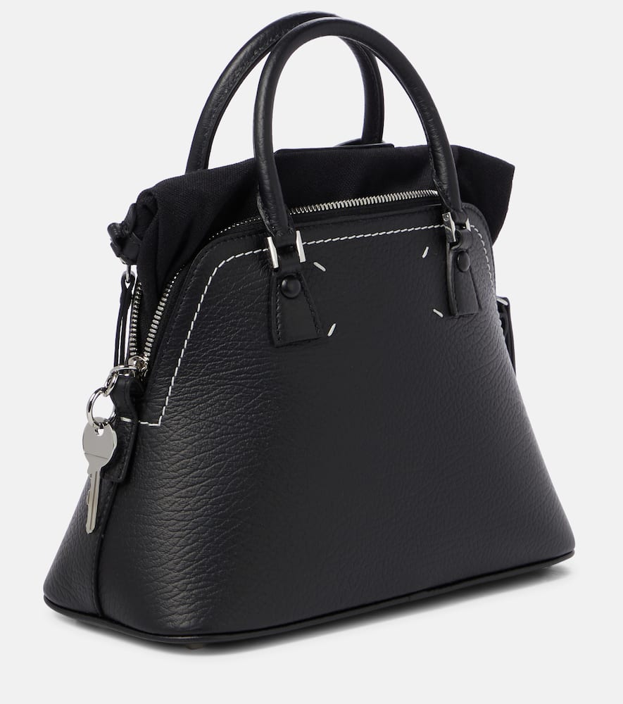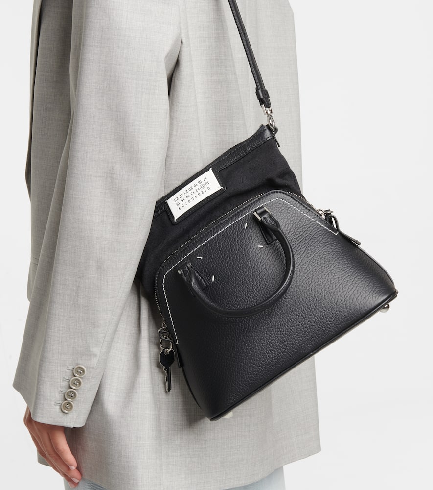 Internal details: internal slot pocket, fabric lining. Made in Italy. Designer color name: Black. Comes with dust bag. Color of fastening: silver. Closure: zipped top. Detachable, adjustable shoulder strap, Top handles. Material: calf leather. Shop the latest Maison Margiela Top-Handle Bags for women now.