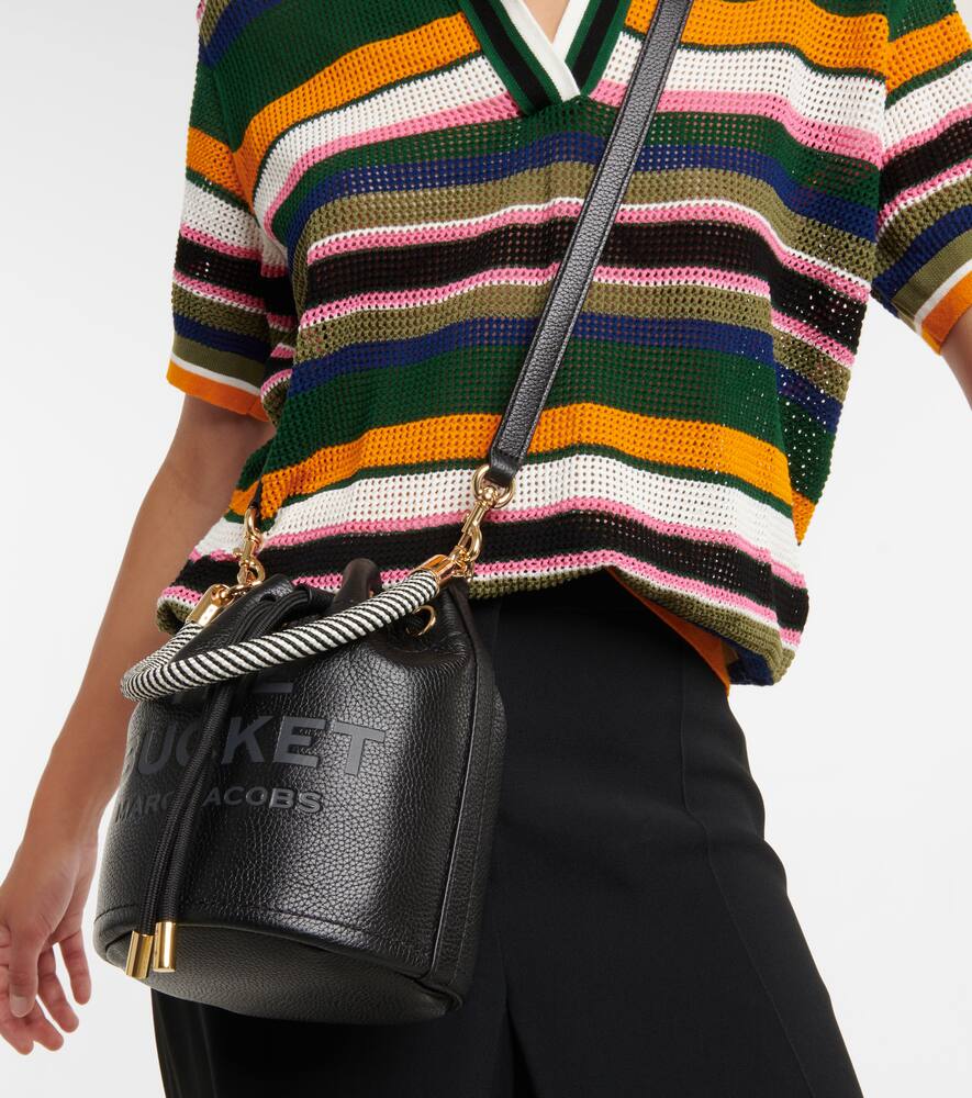 Top handle, Detachable, adjustable shoulder strap. Internal details: internal slot pocket. Designer color name: Black. Made in Italy. Material: leather. Closure: drawstring top. Trim: fabric. Shop the latest Marc Jacobs Top-Handle Bags for women now.