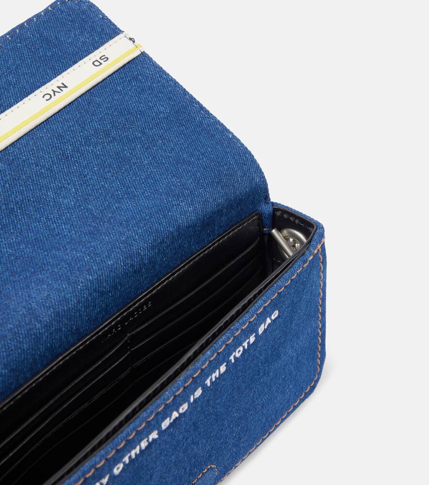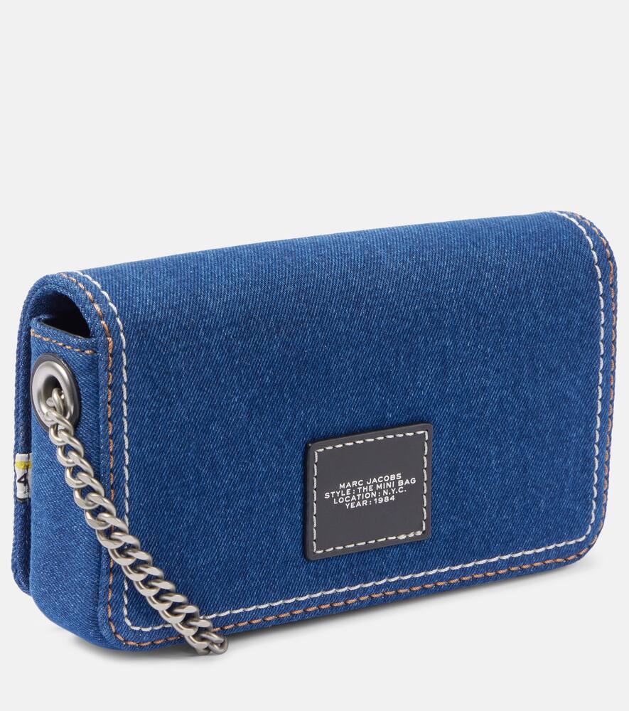 Material: cotton. Lining: cotton, leather. Made in Vietnam. Designer color name: Dark Wash . Chain shoulder strap. Closure: magnetic fastening. Internal details: internal slot pockets. Shop the latest Marc Jacobs Crossbody Bags for women now.