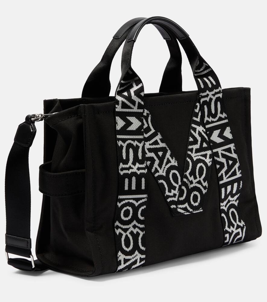 Closure: zipped top. Material: fabric. Designer color name: Black/White. Detachable, adjustable shoulder strap, Top handles. Internal details: internal zipped pocket, internal slot pockets. Made in Vietnam. Shop the latest Marc Jacobs Tote Bags for women now.