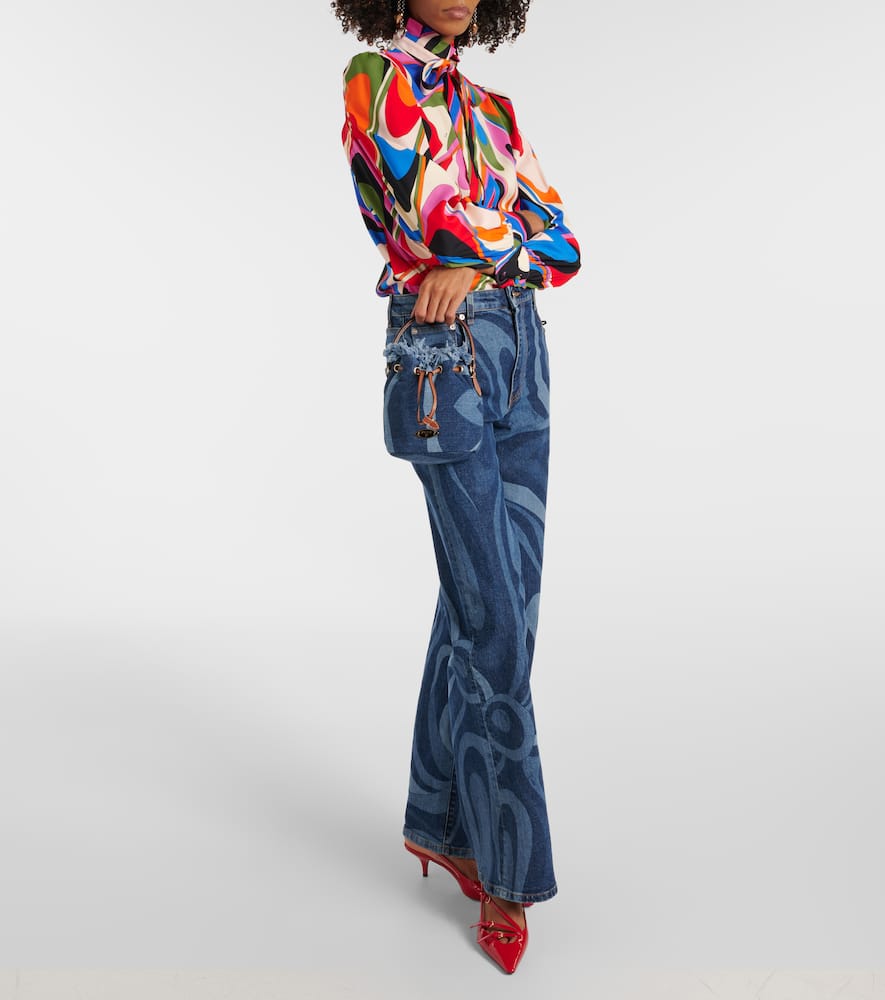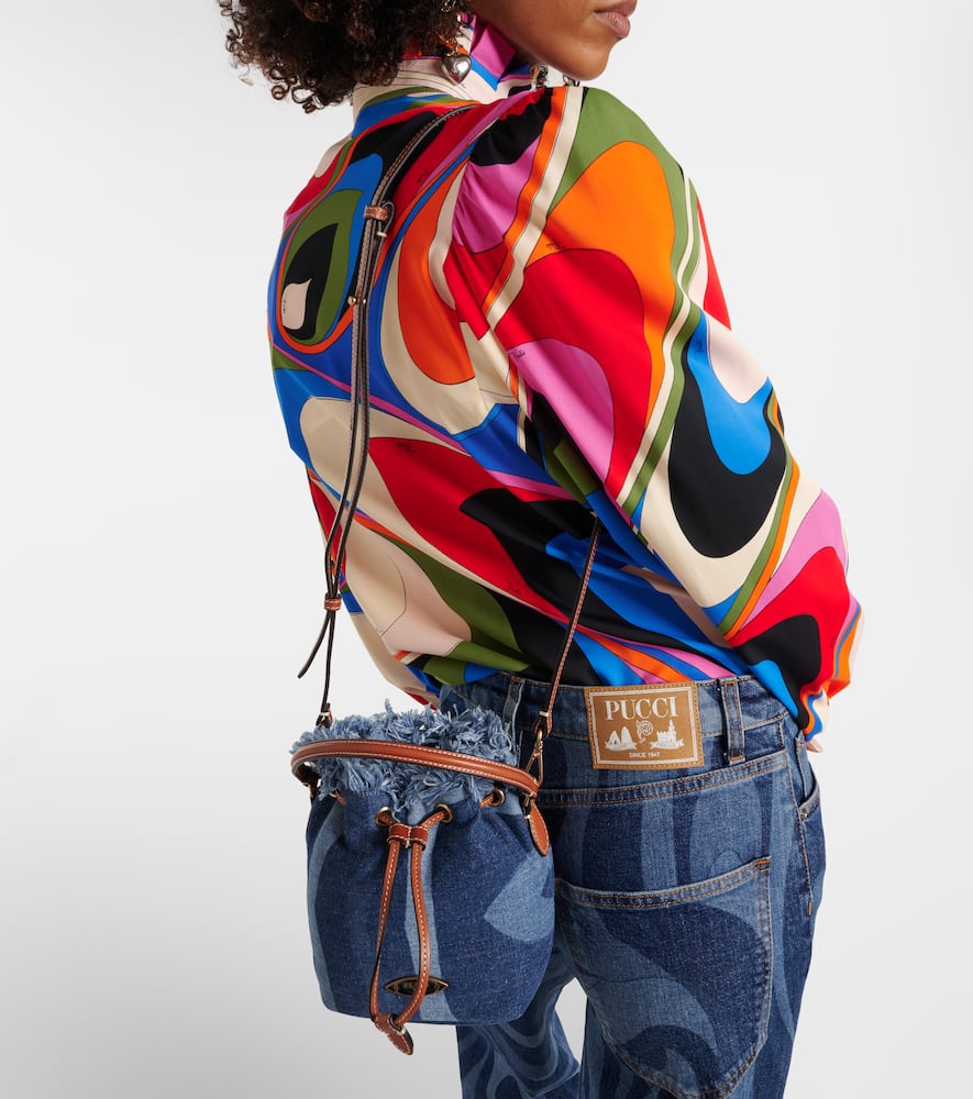 Pucci Marmo Small leather-trimmed denim bucket bag