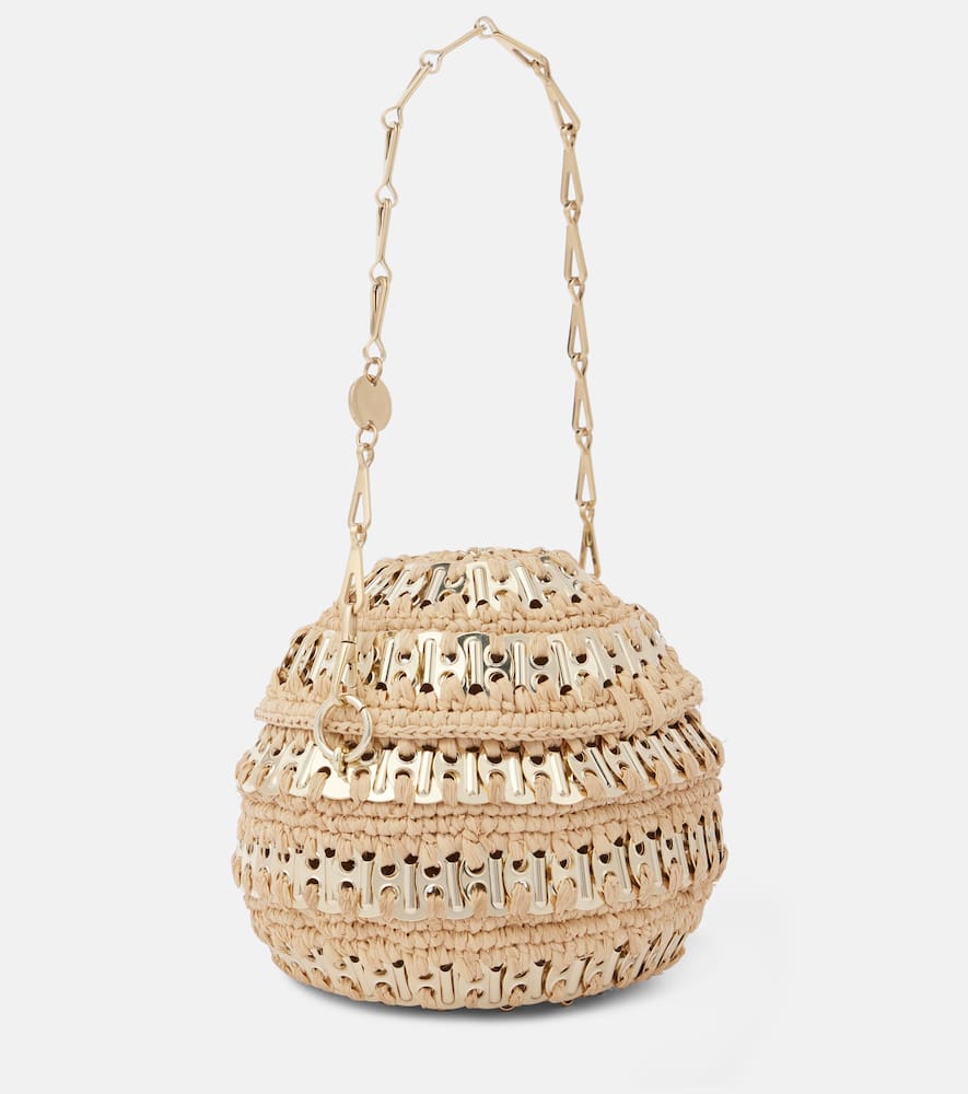 Material: raffia, brass. Lining: unlined. Made in Madagascar . Designer color name: Natural / Light Gold. Detachable chain shoulder strap. Includes: dust bag. Shop the latest Rabanne Top-Handle Bags for women now.