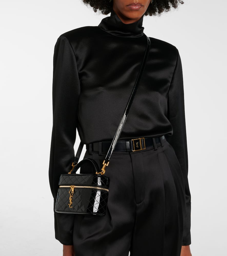 Material: leather. Lining: leather. Made in Italy. Designer color name: Noir. Closure: two-way zipped top. Top handle, Detachable, adjustable shoulder strap. Internal details: card slot. Shop the latest Saint Laurent Top-Handle Bags for women now.